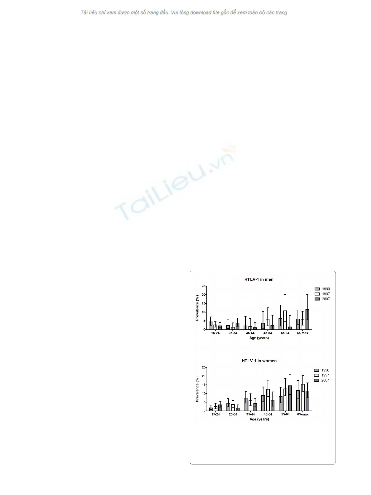 Results: HTLV-1 prevalence was 5.2% in 1990, 5.9% in 1997 and 4.6% in 2007. Prevalence was higher among women