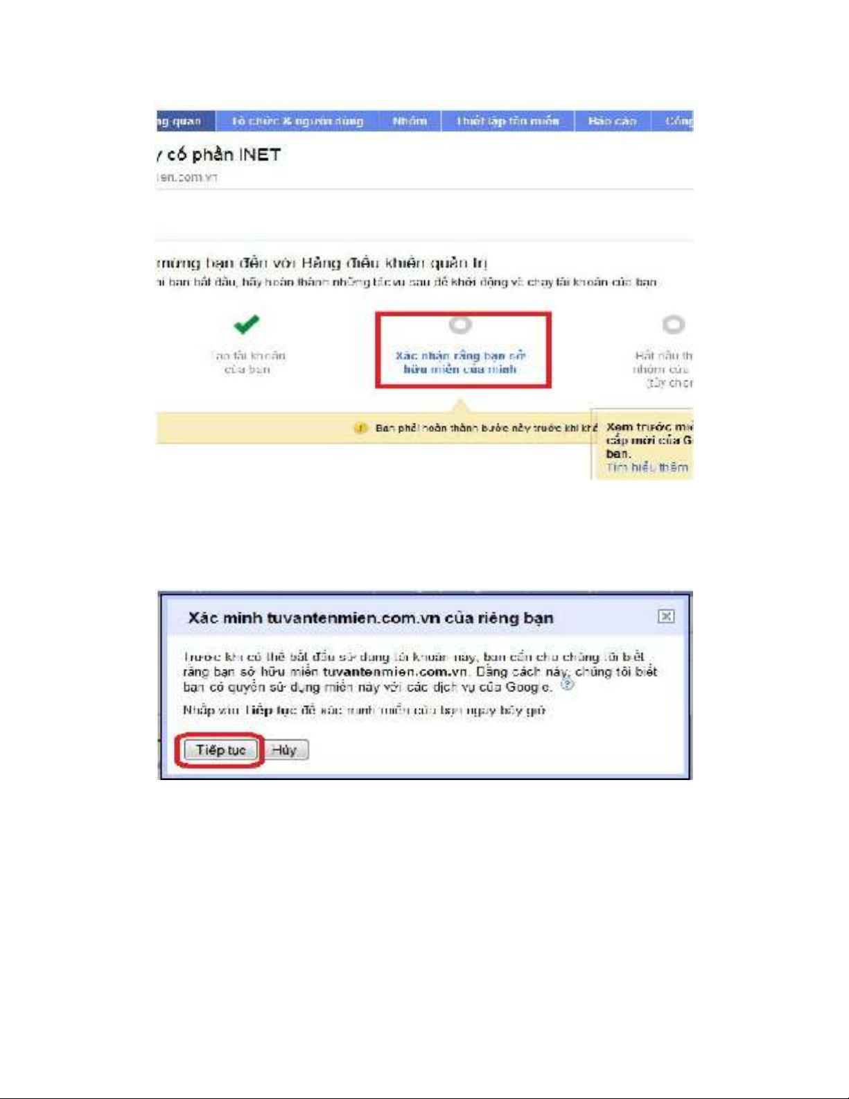 Bước 7: Chọn “Xác nhận rằng bạn sở hữu tên miền của mình”