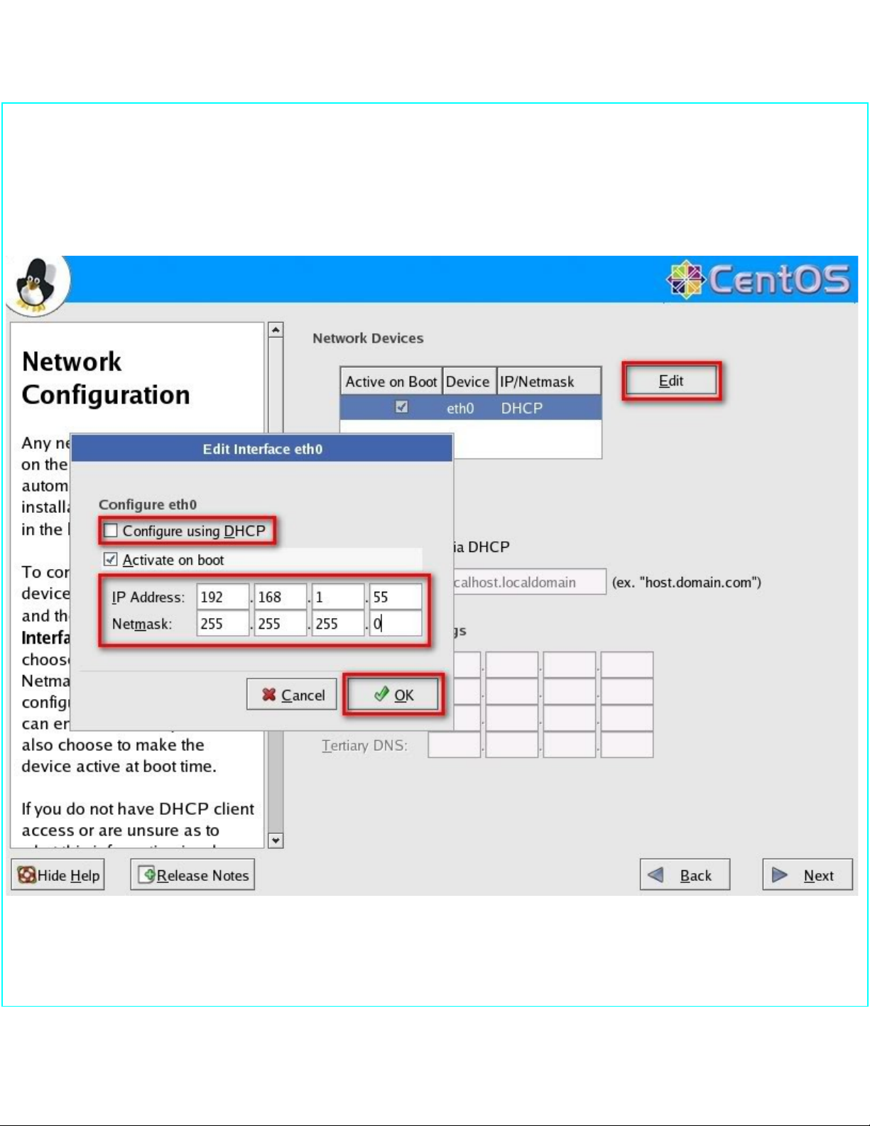 Trong h p tho iộ ạ Edit Interface, b ch nỏ ọ Configure using DHCP và nh p đ a ch IP, Netmask vào các ô t ngậ ị ỉ ươ