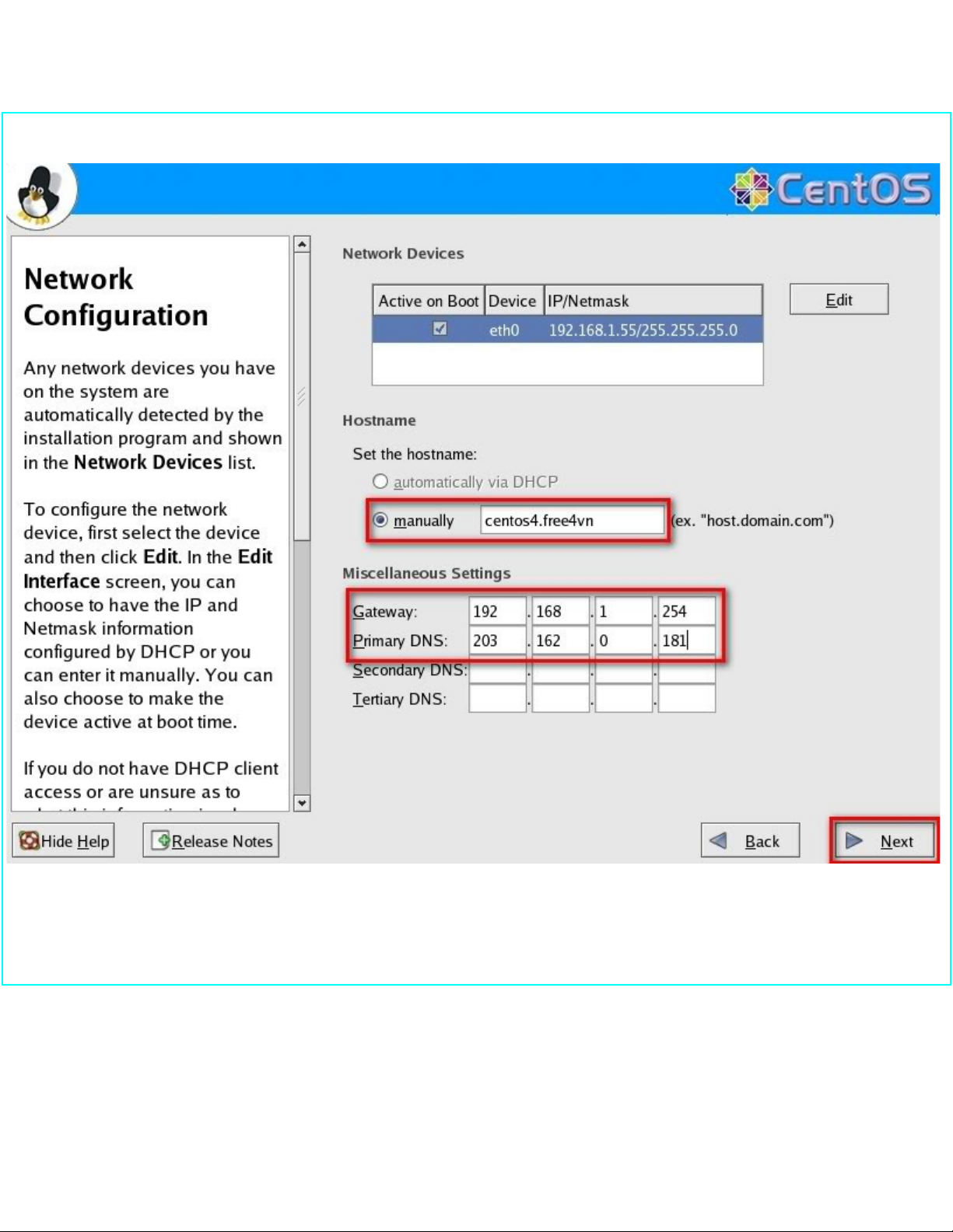 Sau khi nh p đ a ch IP, Netmask nh hình 14, s quay tr v màn hìnhậ ị ỉ ư ẽ ở ề Network Configuration. Nh p tên máyậ