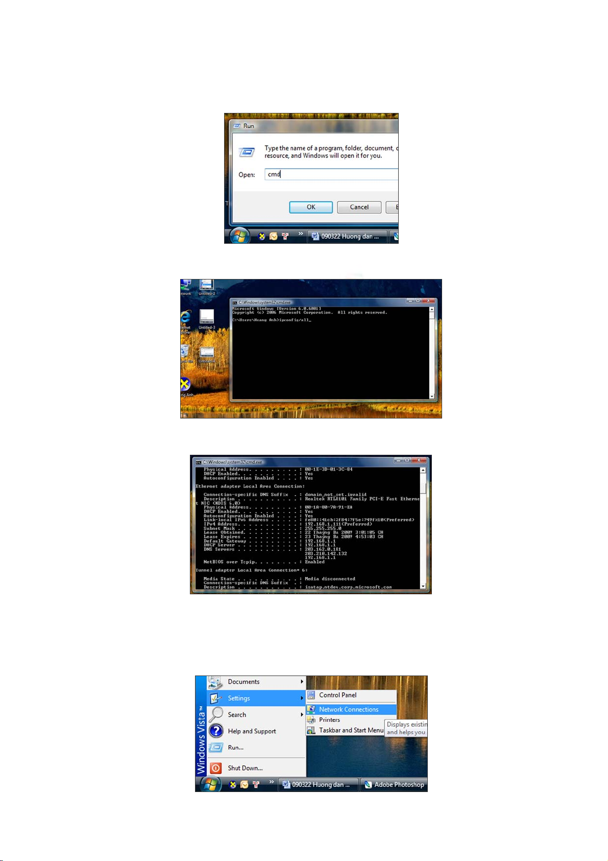 command ipconfig. Ví dụ dưới đây được thực hiện với máy tính chạy hệ điều hành Windows