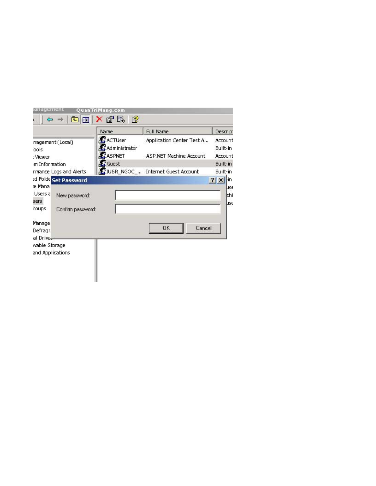 khẩu cho tài khoản Guest này để chắc chắn mọi việc sẽ diễn ra theo ý muốn. Cũng từ mục Guest