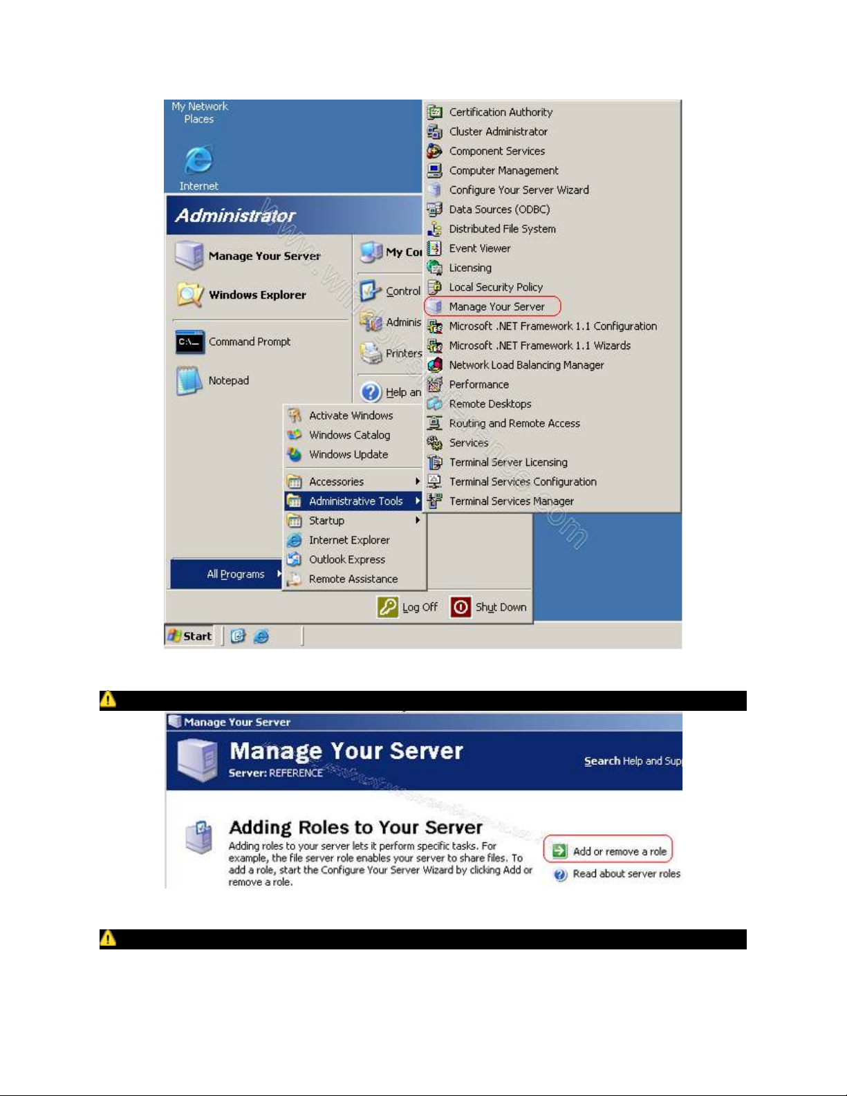 Đầu tiên bạn cần vào Start–>All Programs–>Administrative Tools–>Manage Your Server