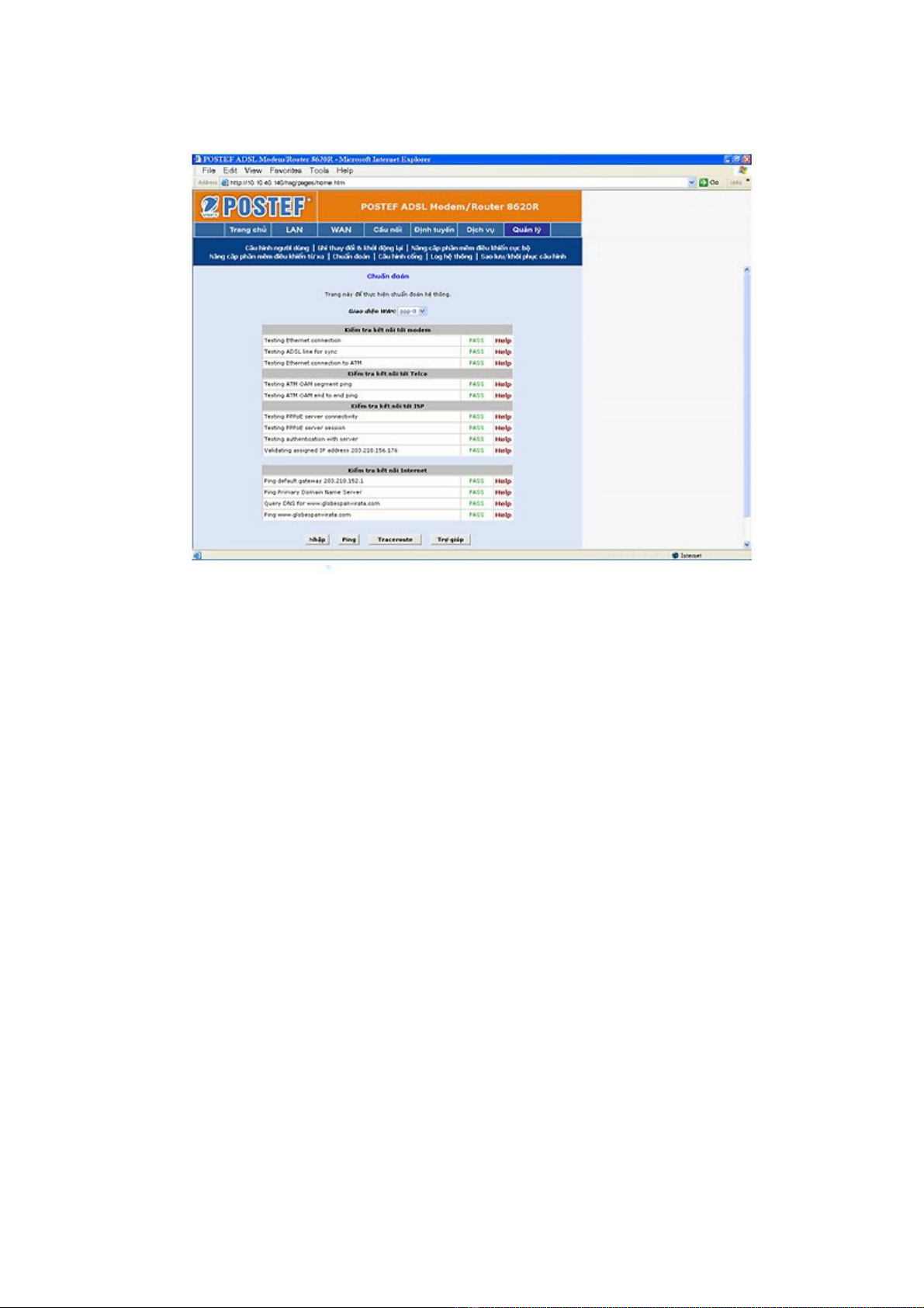 Kiểm tra thiết lập kết nối xDSL và sự đồng bộ từ Modem ADSL của bạn đến nhà cung cấp dịch vụ nếu FAIL kiểm tra lại line ADSL