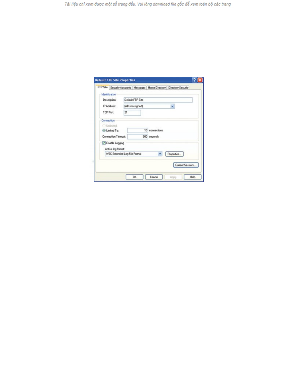 •Tab đầu tiên FTP Site cho phép bạn đổi tên site và thiết lập cổng truy cập (bạn có thể để mặc