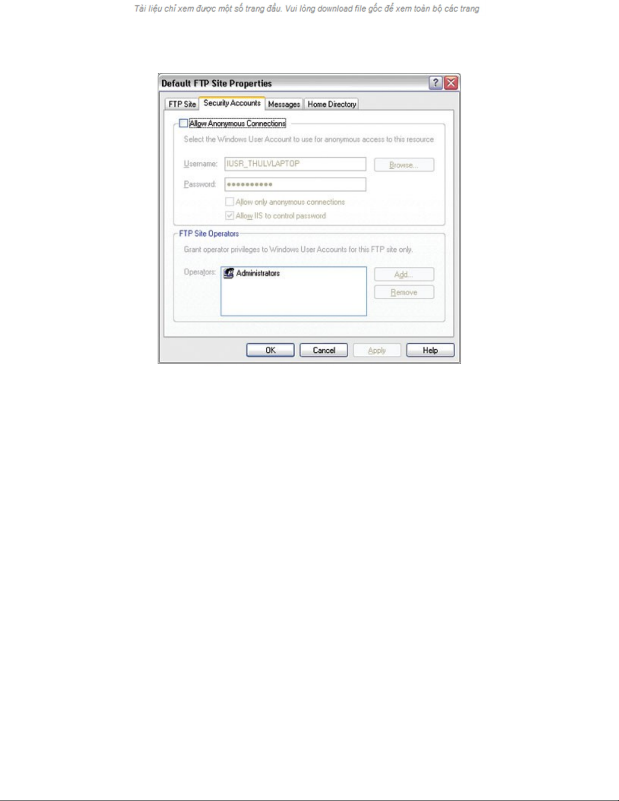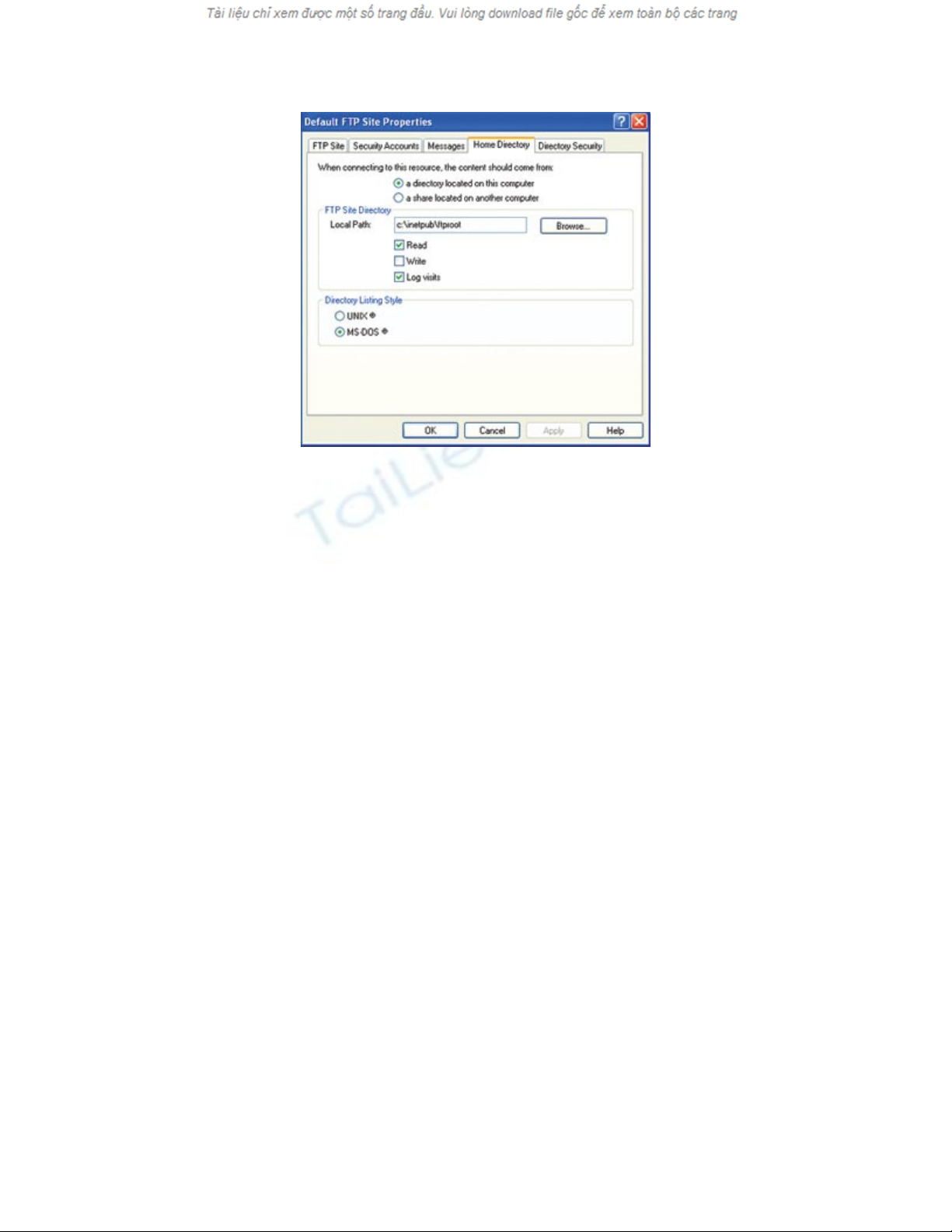 hiển thị trên site FTP. Trong mục FTP Site Directory, bạn chỉ định thư mục muốn dùng và xác lập quyền