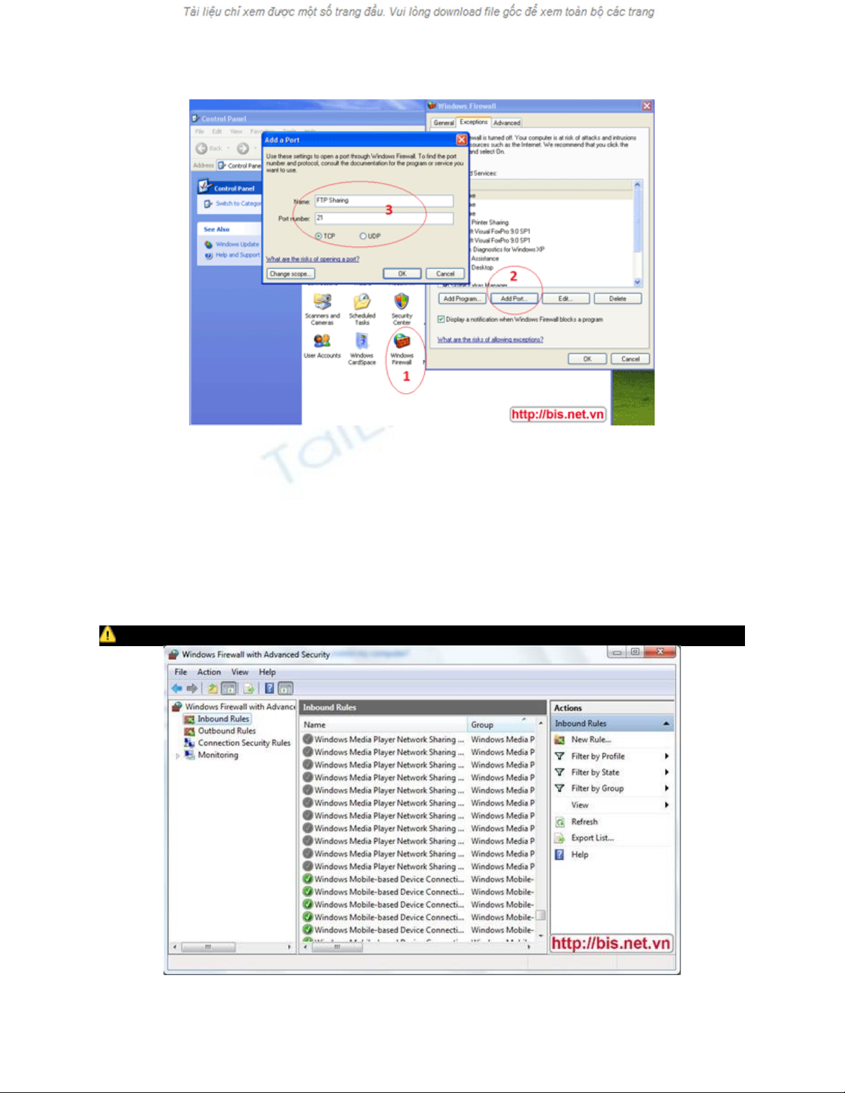 •Cấu hình Firewall trên Server cho phép nhận kết nối đến qua giao thức FTP