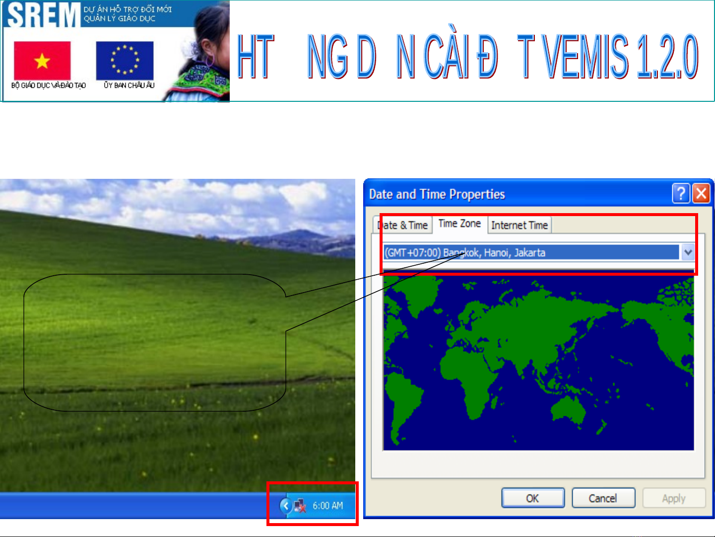 B1 : Kích đúp vào bi u t ng th i gianể ượ ờ B2 : Ch n “Time Zone” và “(GMT+07:00)…ọ