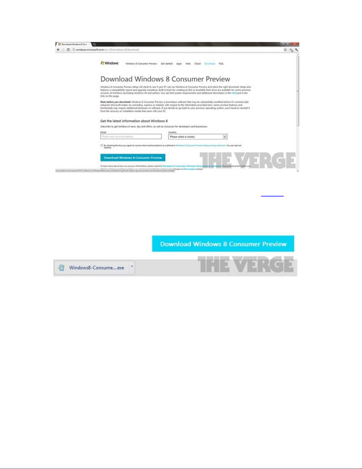 Đầu tiên, bạn hãy tải về bộ cài Windows 8 Consumer Preview tại đây.