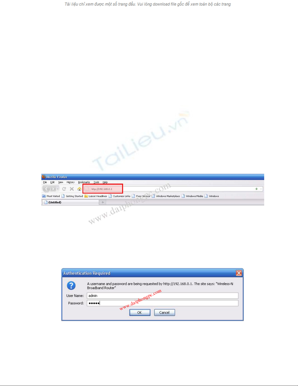 - Nhập đúng địa chỉ IP như trên trình duyệt sẽ hiện ra hộp thoại yêu cầu nhập user name và