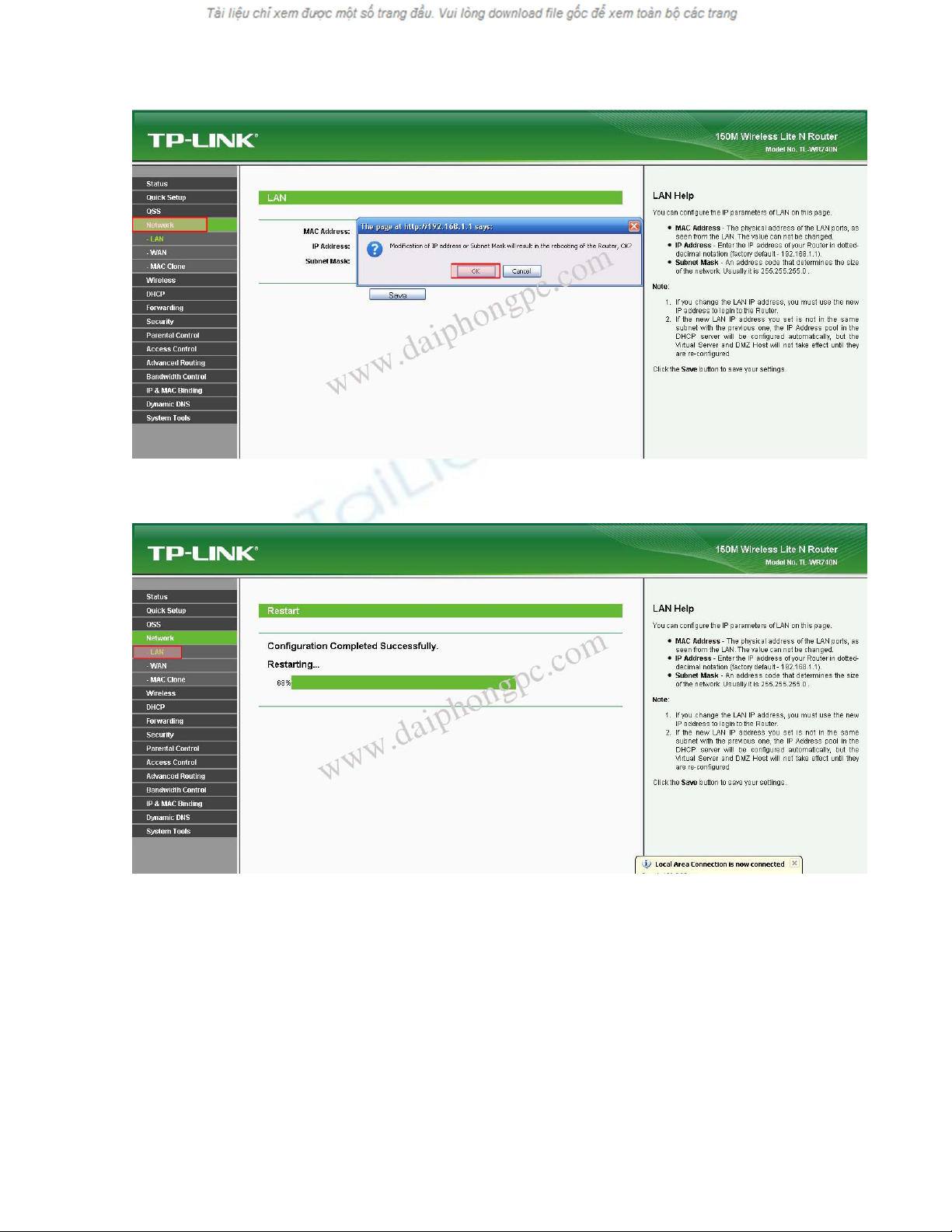 - Click OK sau đó đợi vài giây cho bộ phát restart lại: