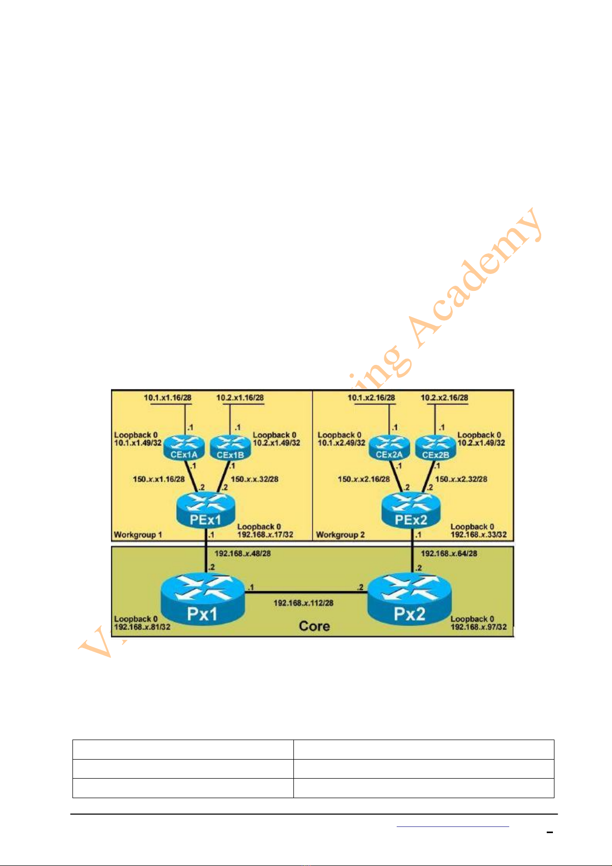 3. Sơ đồ địa chỉ IP của MPLS Lab:
