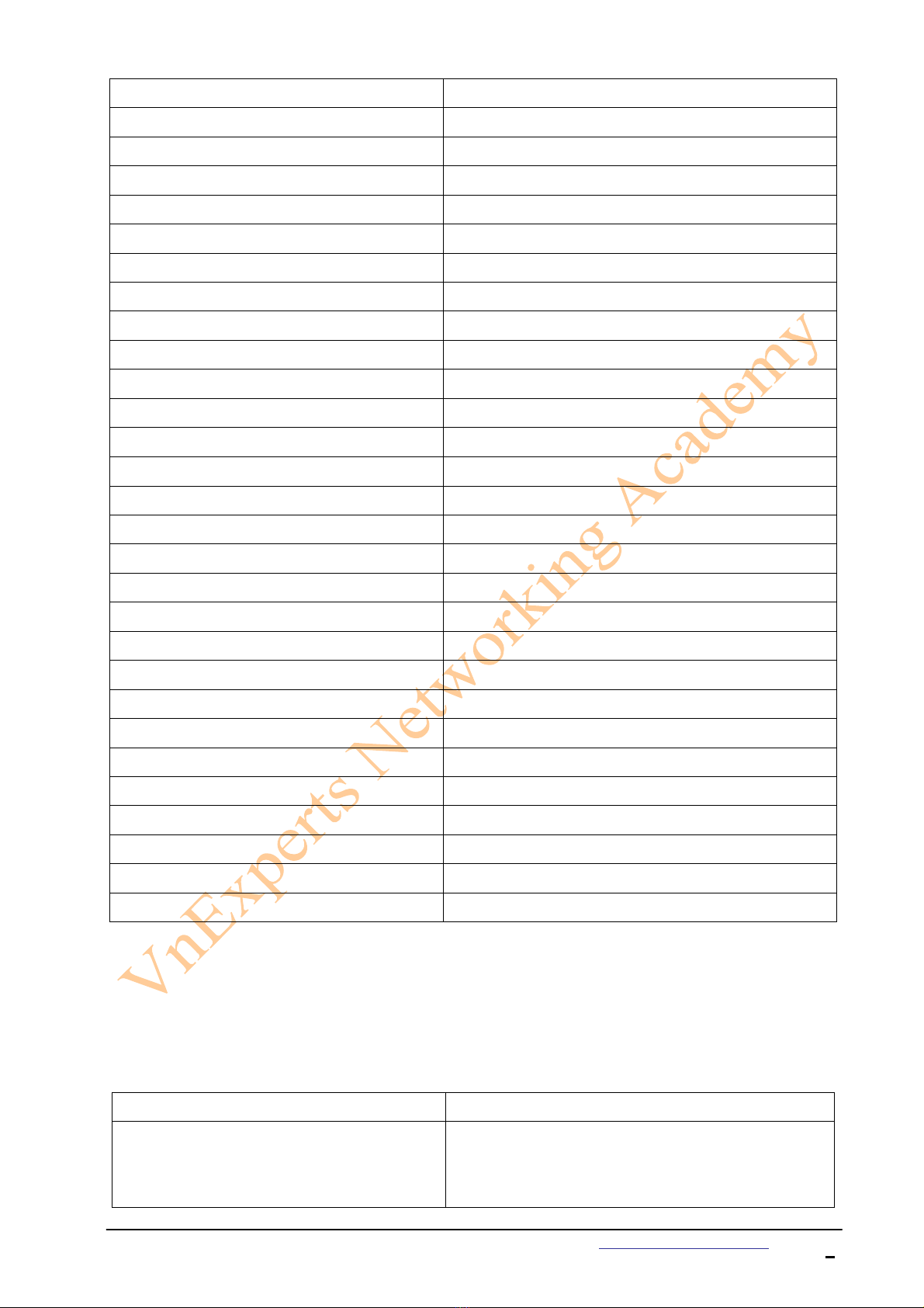 - Bảng này sẽ mô tả những câu lệnh được sử dụng trong bài lab này: