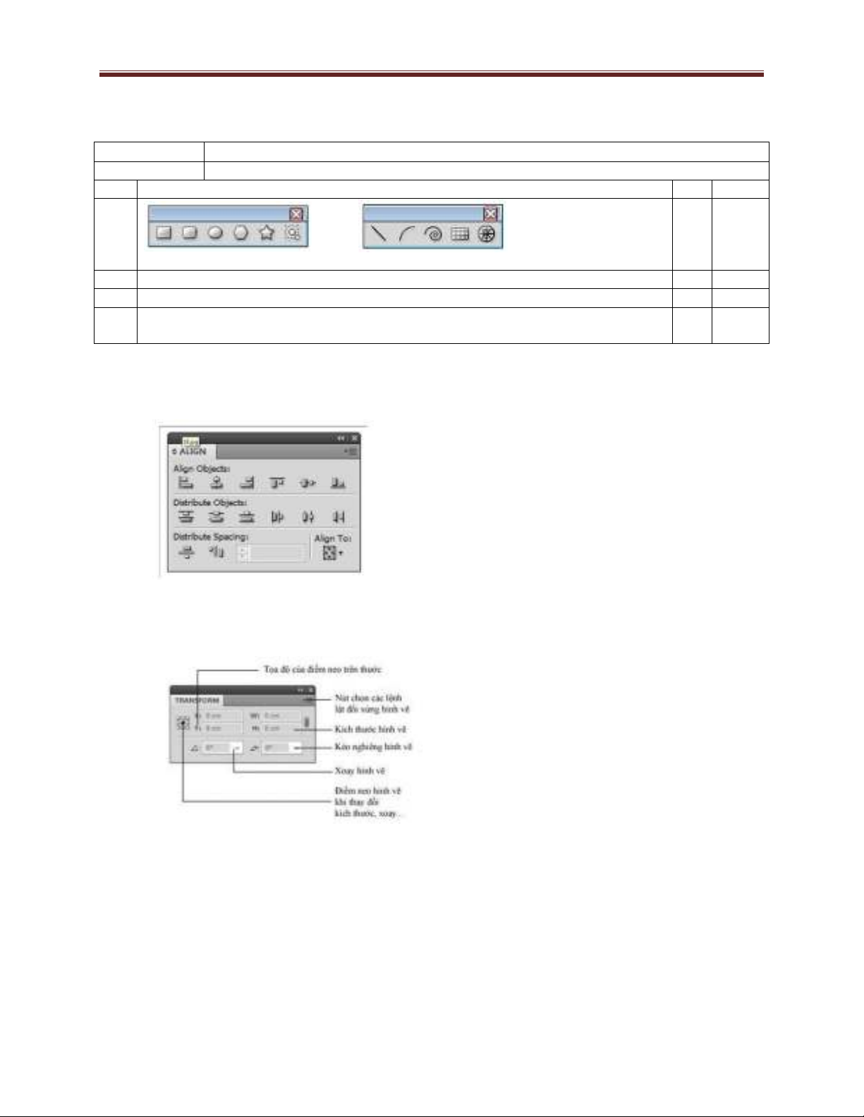 - Bảng lệnh Tranform: Window > Tranform ( Shif + F8) : Cho phép thực hiện các thao tác một