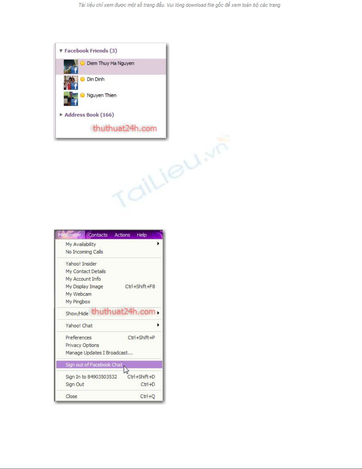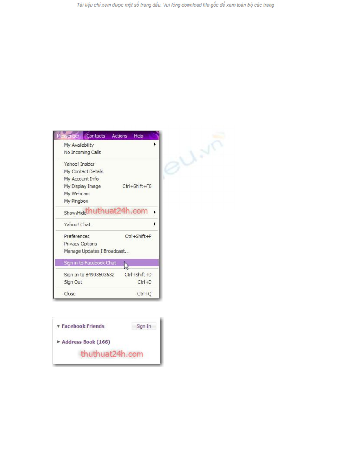 chat của Facebook trên Y!M, bạn chọn Messenger ->