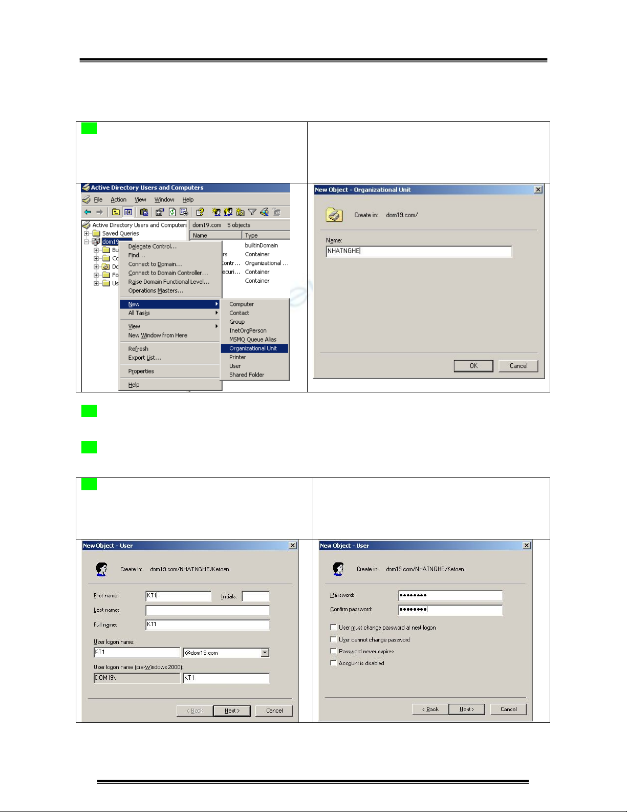 B5: Trong OU Ketoan tạo user KT2 (Tương tự như B4)
