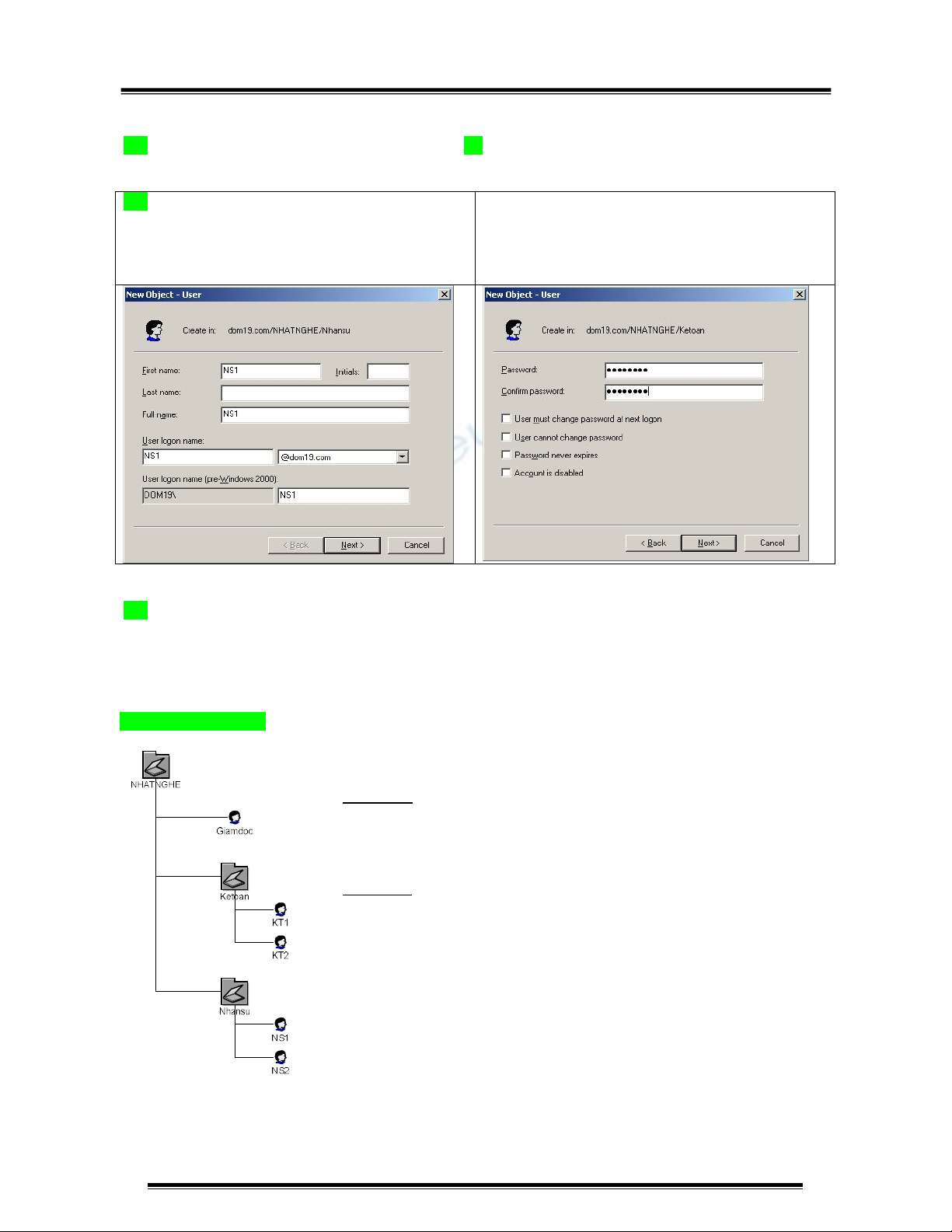 B7: Trong OU Ketoan tạo user NS2 (Tương tự như B6)