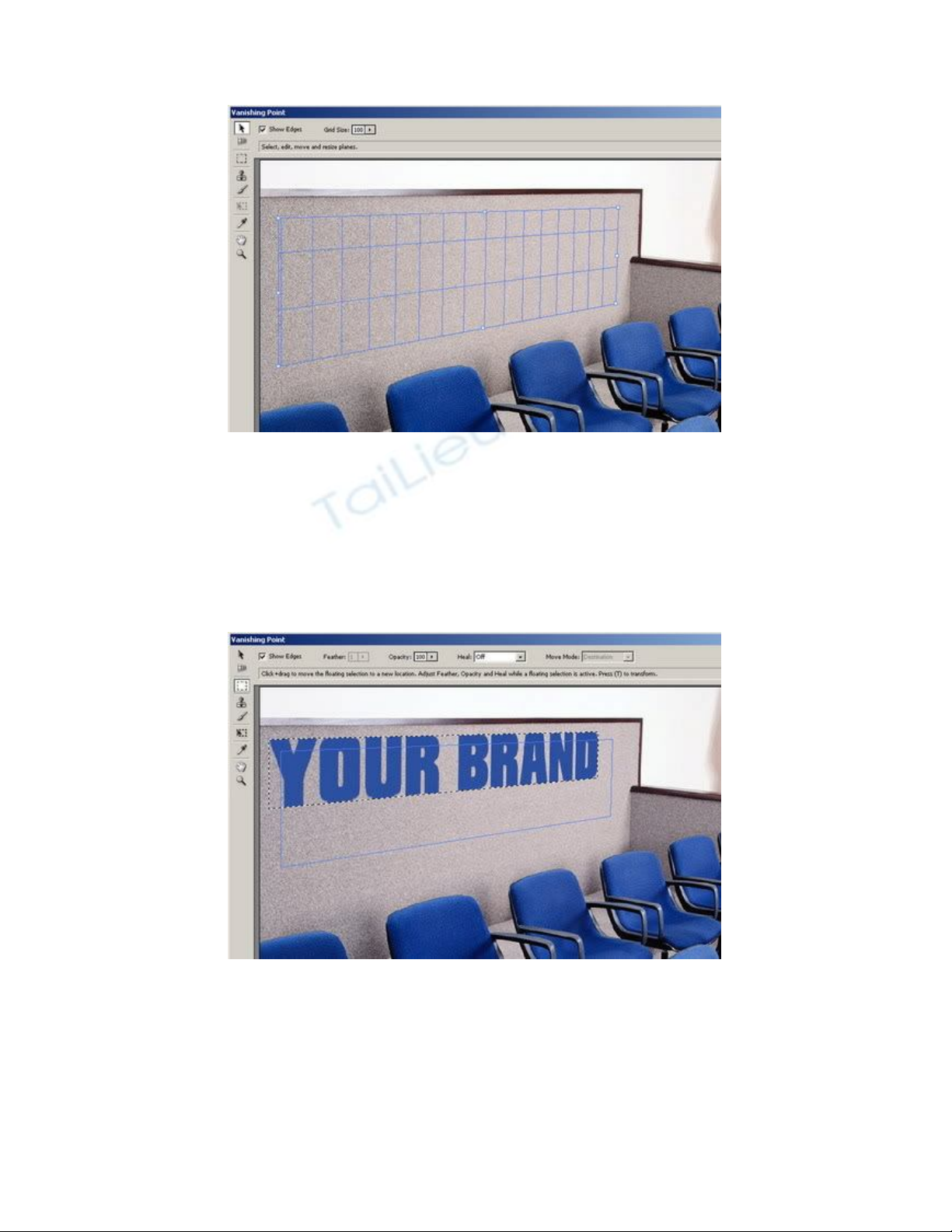 tạo ra phối cảnh theo điểm tụ: Vanishing Point - phím tắt Ctrl + Alt + V . Ở đây ta sẽ