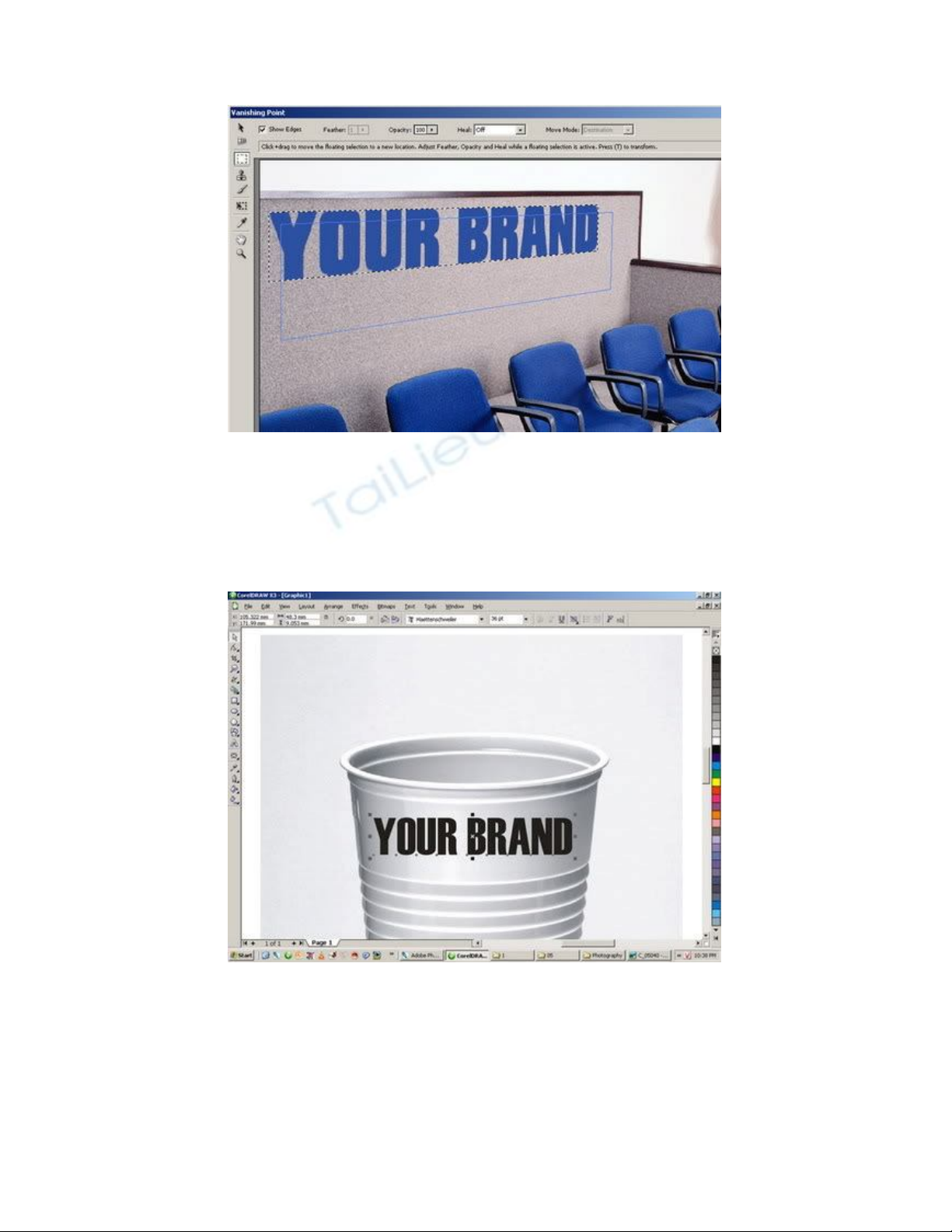 thước sát với tên thương hiệu của bạn rồi chỉnh nó nằm theo phối cảnh hợp lý trên