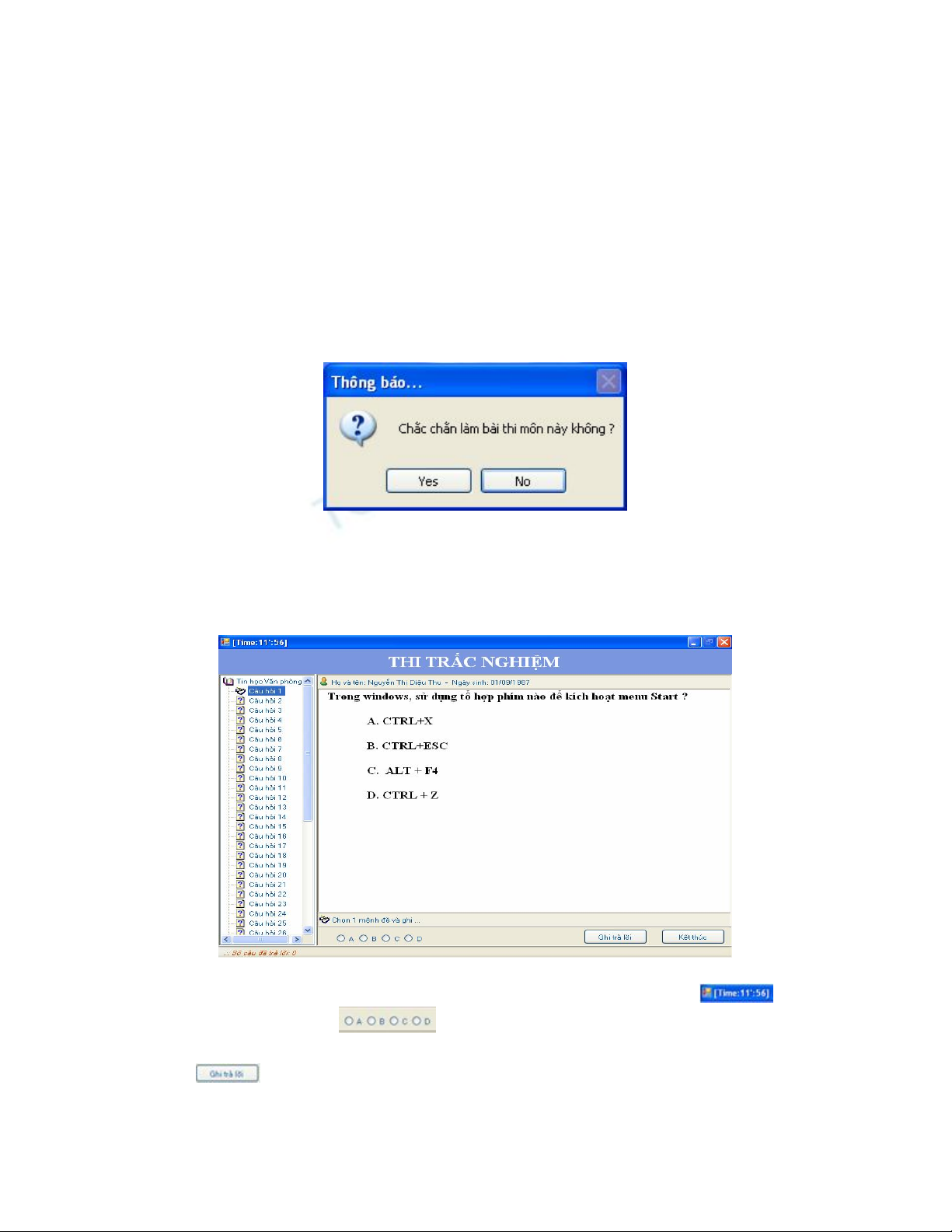 - Nếu chọn “Yes”, xuất hiện màn hình làm bài thi: