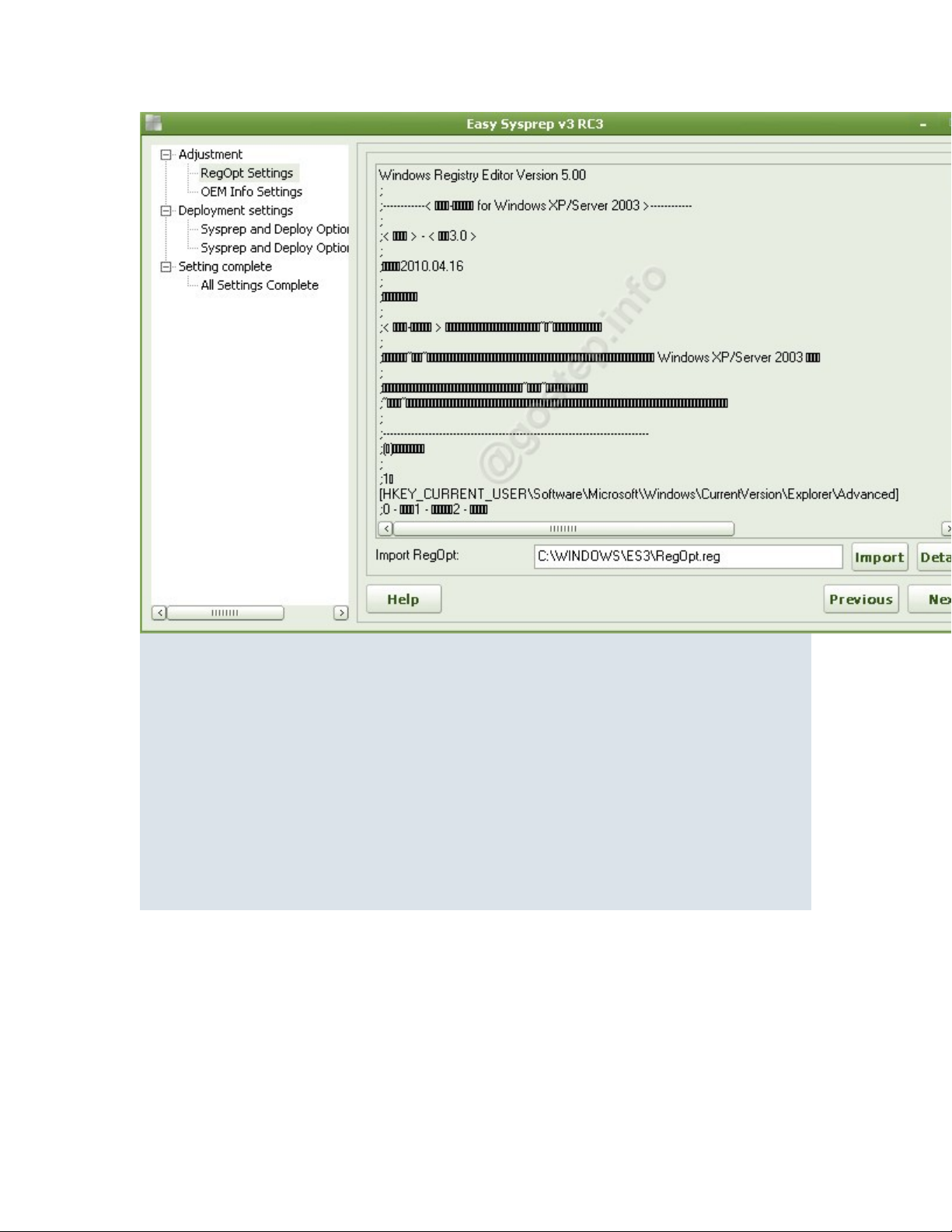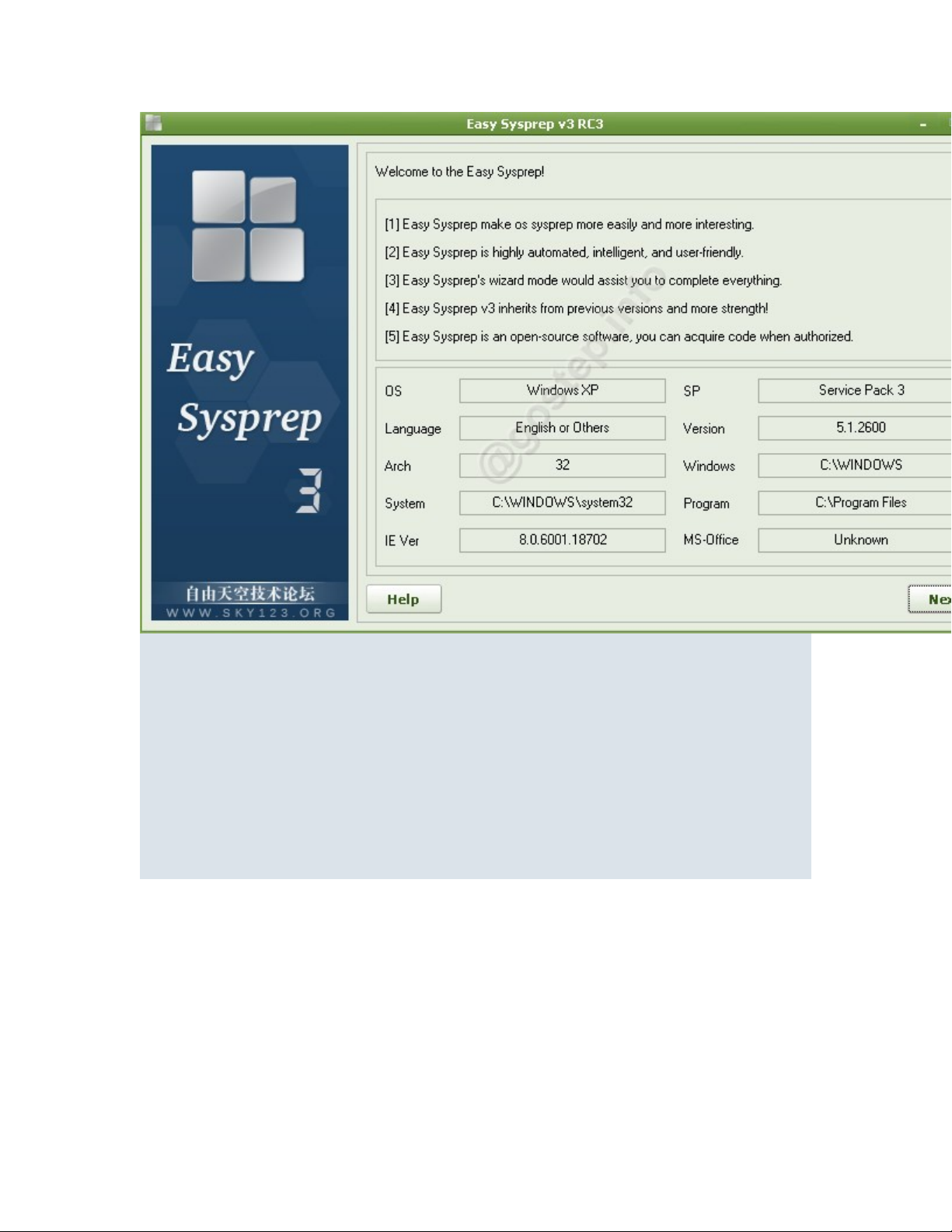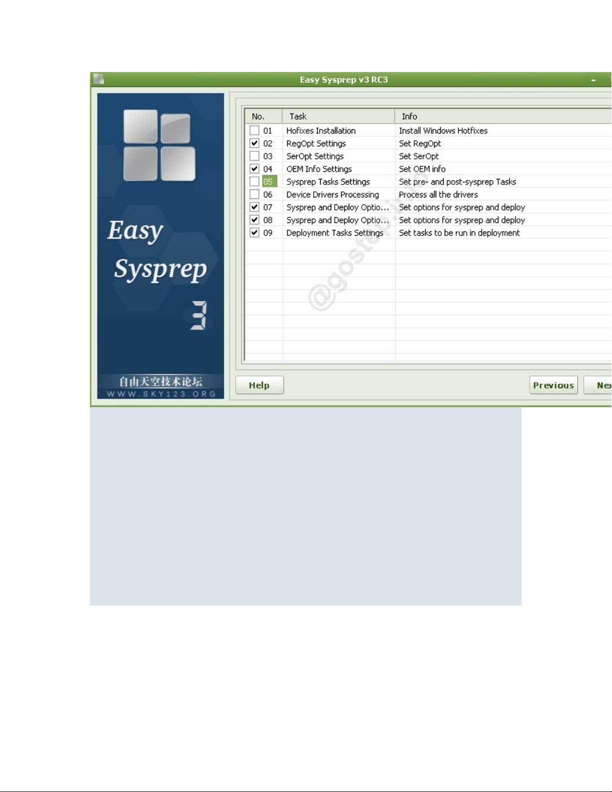 Main sử dụng EasySysprep rồi. Nhưng phiên bản lúc đó bằng Tiếng TQ nên rất khó để các bạn mới làm quen