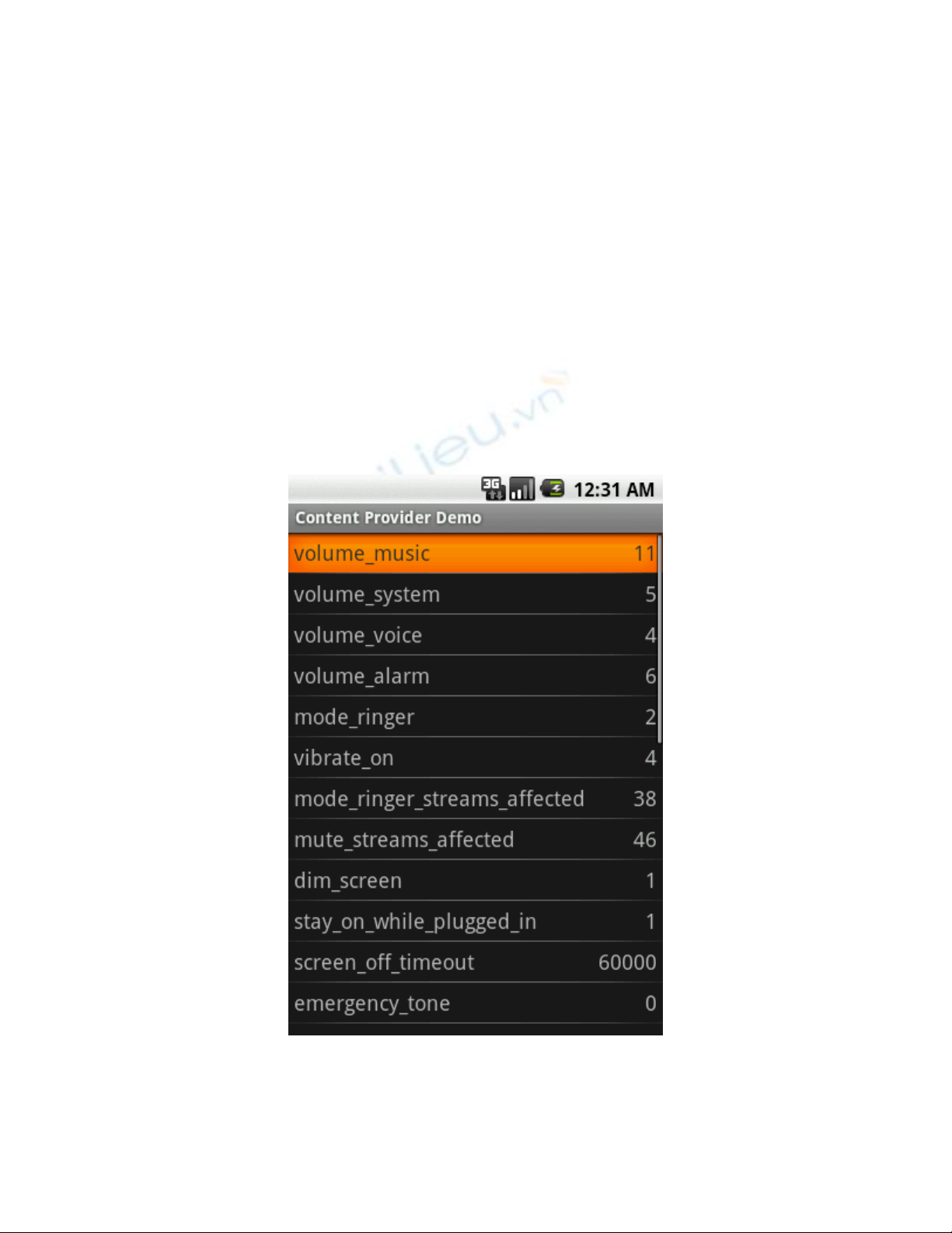đặt...trên điện thoại là dữ liệu dưới dạng Content Provider.