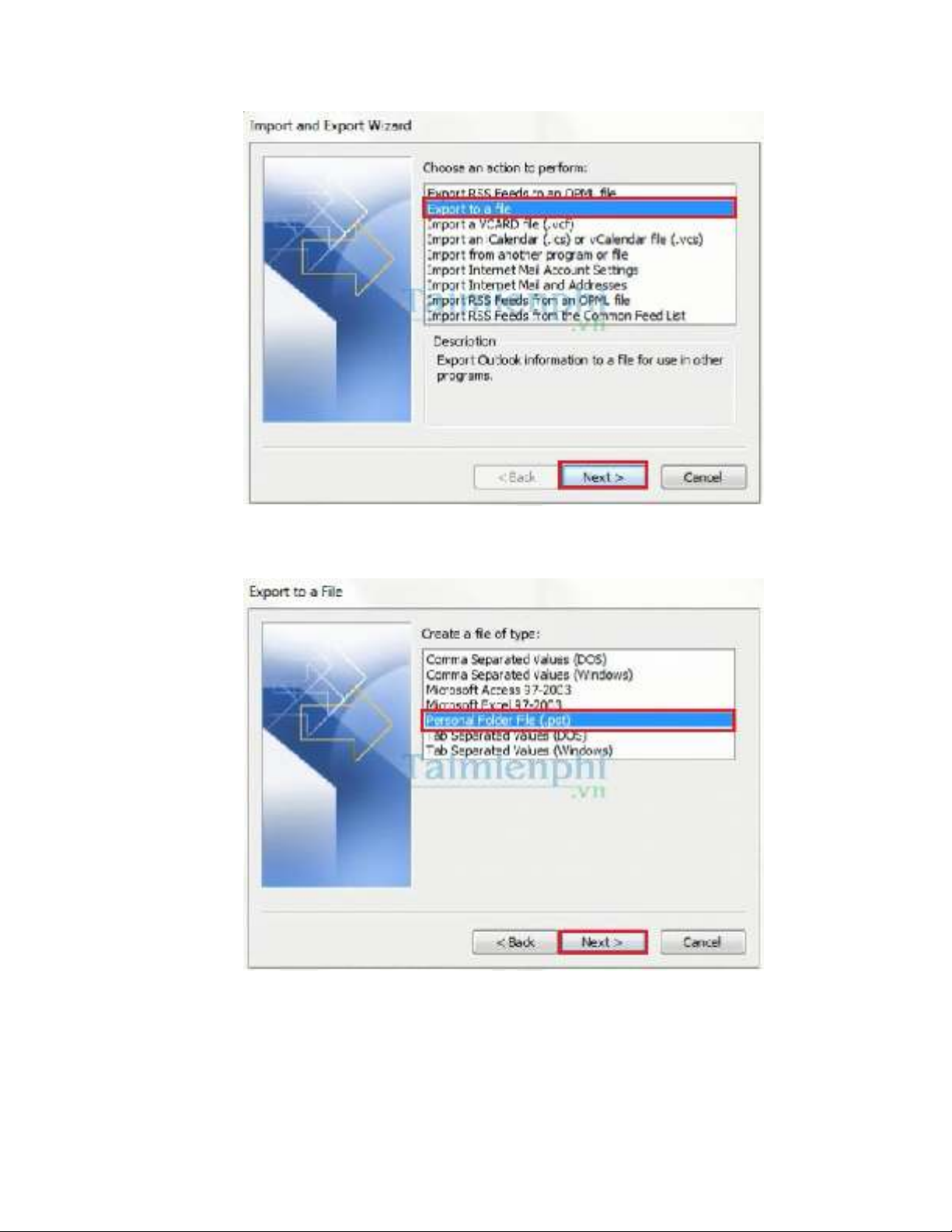 Bước 2 : Bạn chọn Export to a file rồi click Next:
