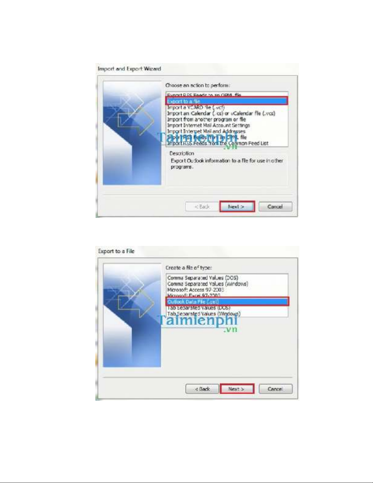 Bước 3 : Bạn chọn Export to a file rồi click Next: