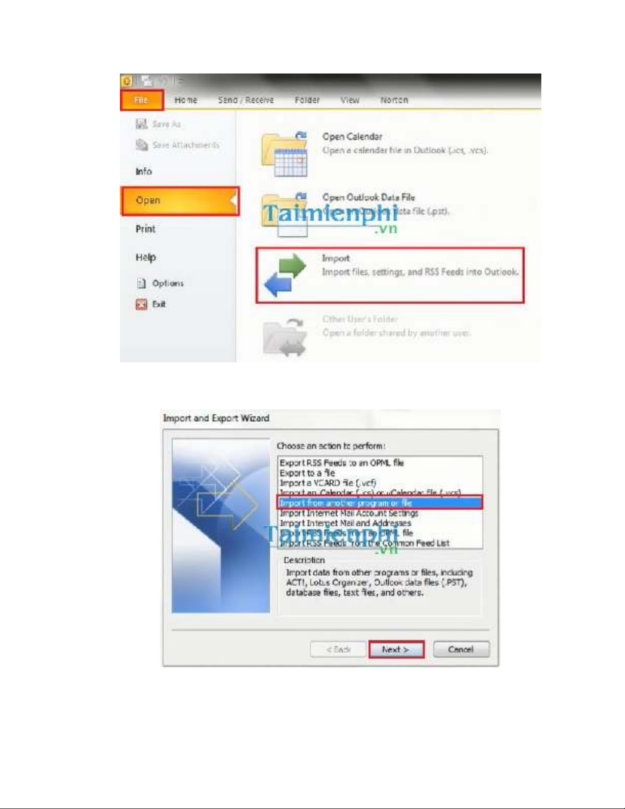 Bước 2 : Bạn chọn Import from another program or file rồi click Next :