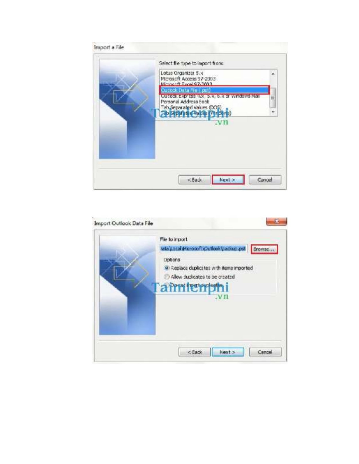Bước 4 : Bạn chọn Outlook Data file (.pst) rồi click Next: