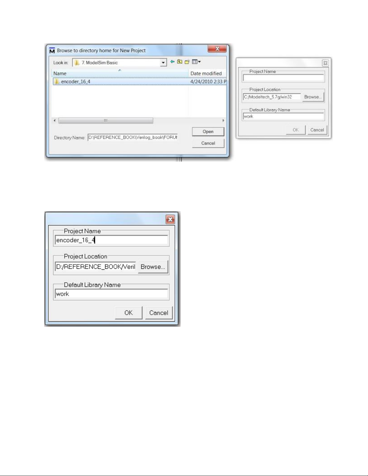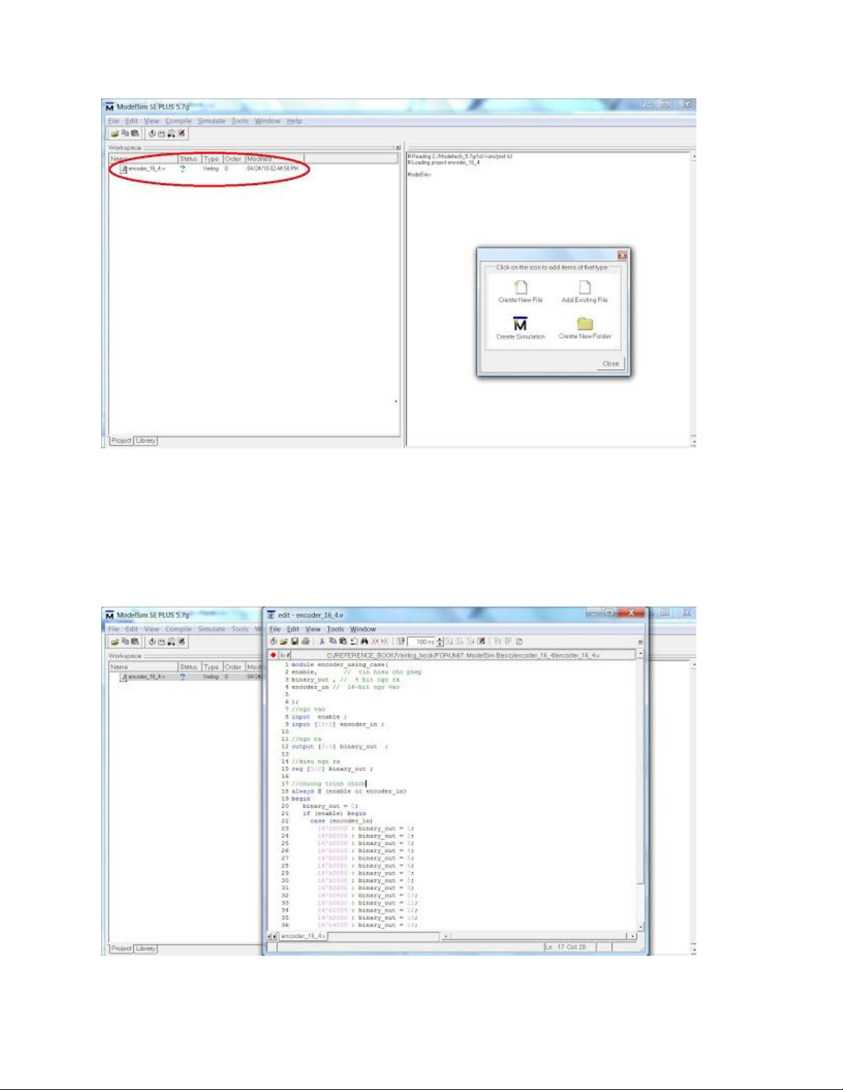 thư mục mới cũng phải dùng ModelSim. Nếu bạn tạo thư mục mới