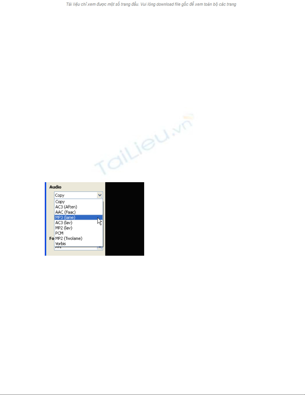khung trái, tiến hành lựa chọn định dạng tập tin audio