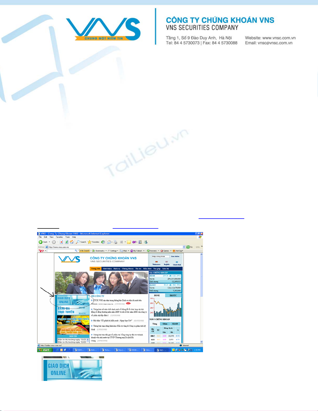 dịch chứng khoán. Trước tiên nhà đầu tư truy cập vào website: www.vnsc.com.vn,