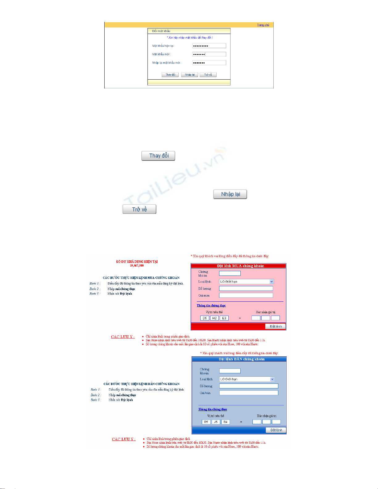 B. Thay đổi mật khẩu giao dịch trên hệ thống:
