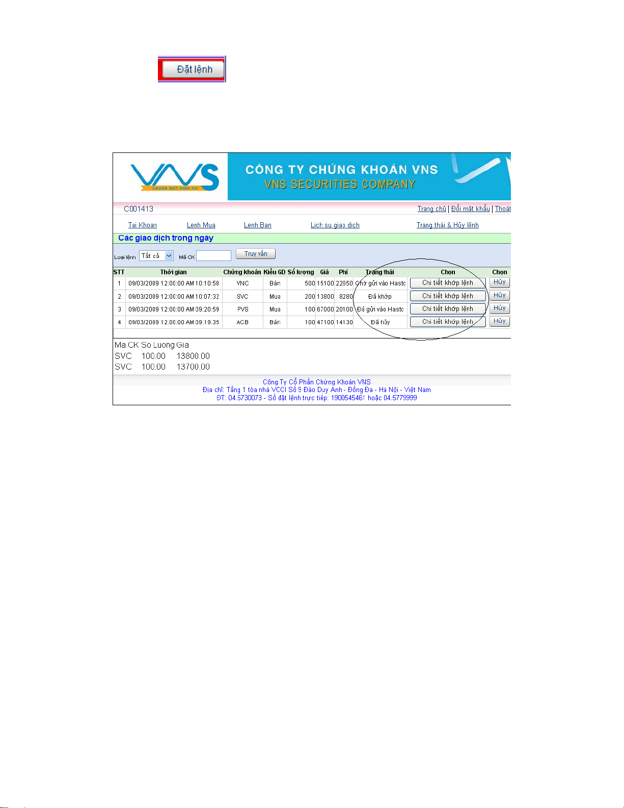 Sau khi đặt lệnh trực tuyến qua Internet, nhà đầu tư có thể xem trạng thái của các lệnh đặt đang chờ