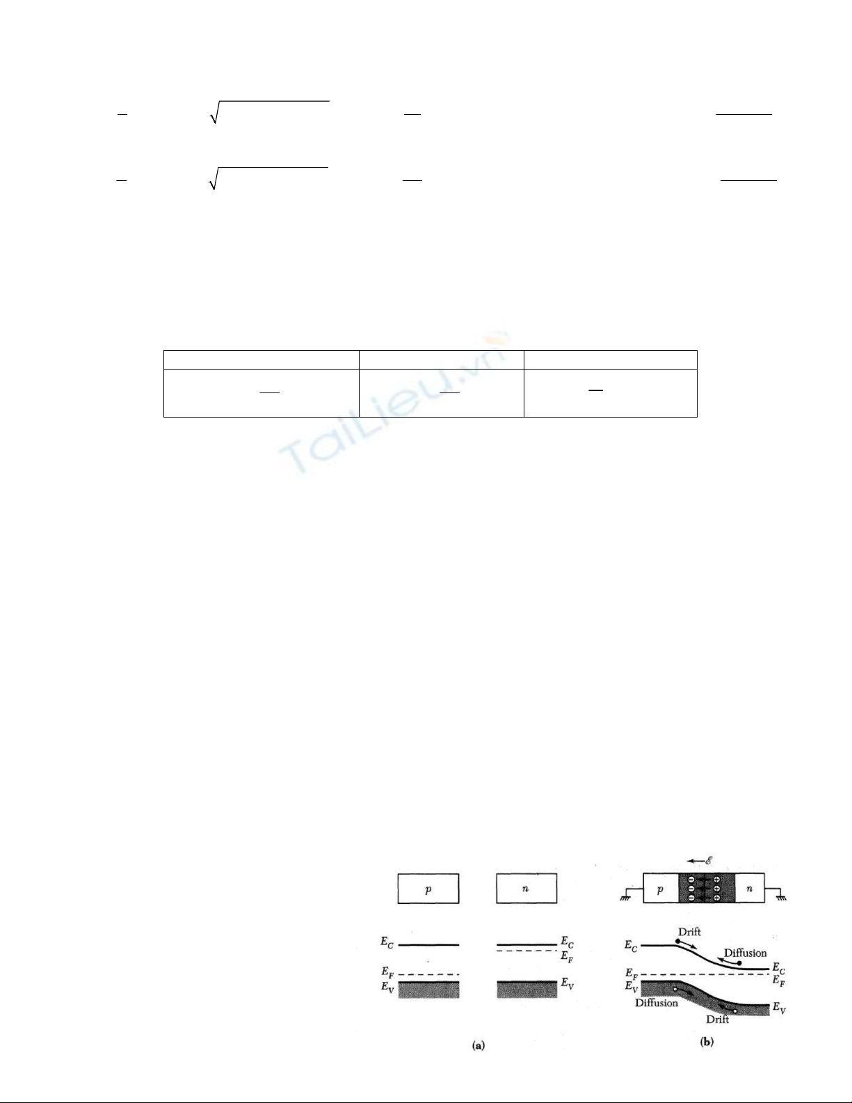 Hệ số khuếch tán điện tử Hệ số khuếch tán lỗ Dạng tổng quát