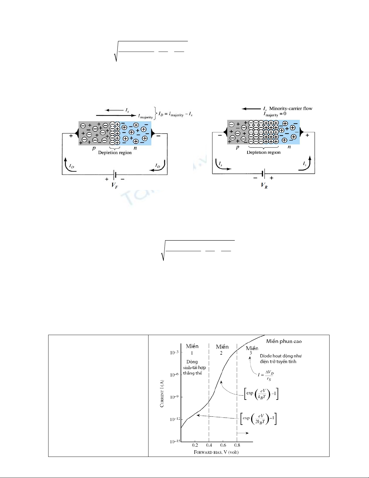 o Bề rộng miền nghèo tăng lên (với điện áp ngược VR > 0, điện áp đặt vào diode là VA= –VR)