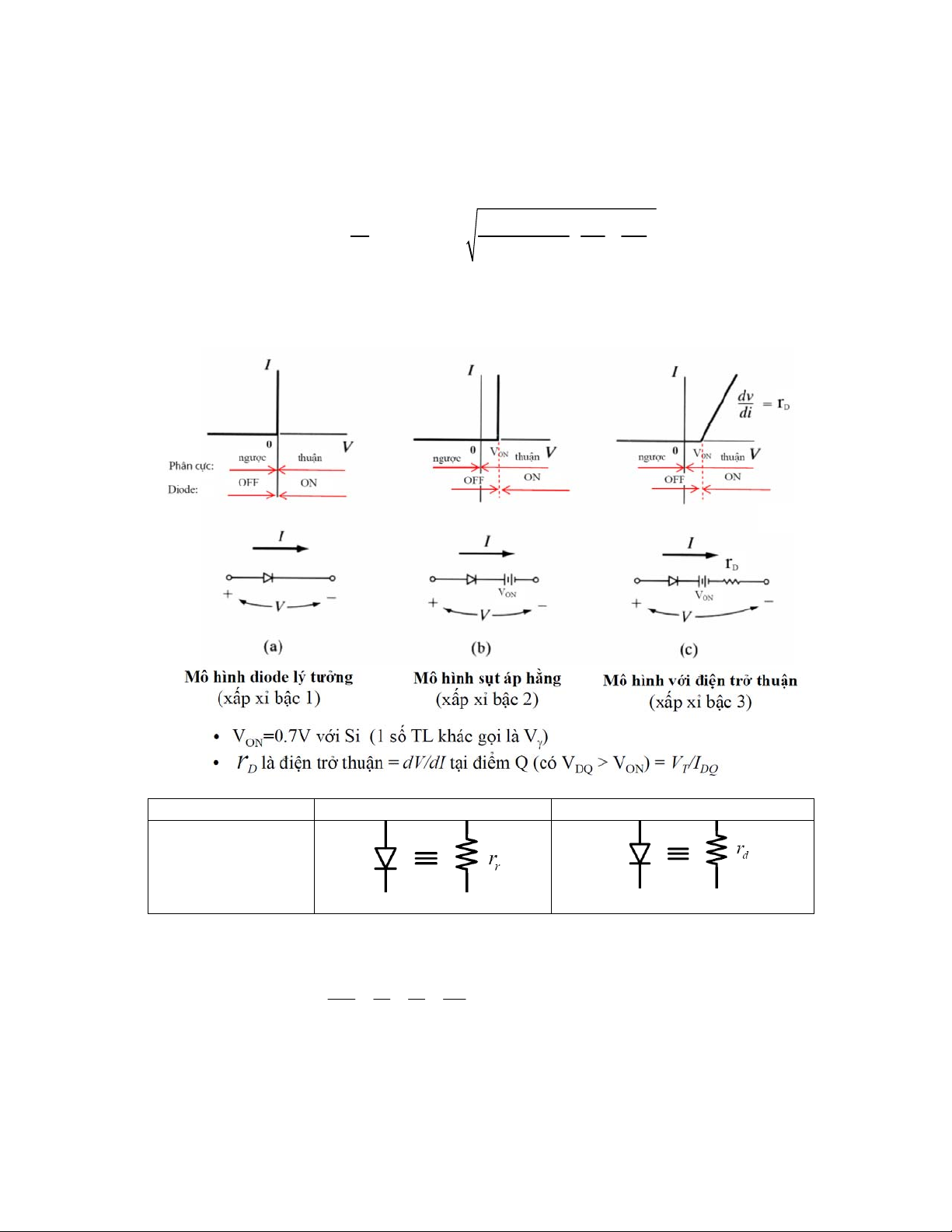 Các mô hình diode: (chưa kể đến vùng đánh thủng)