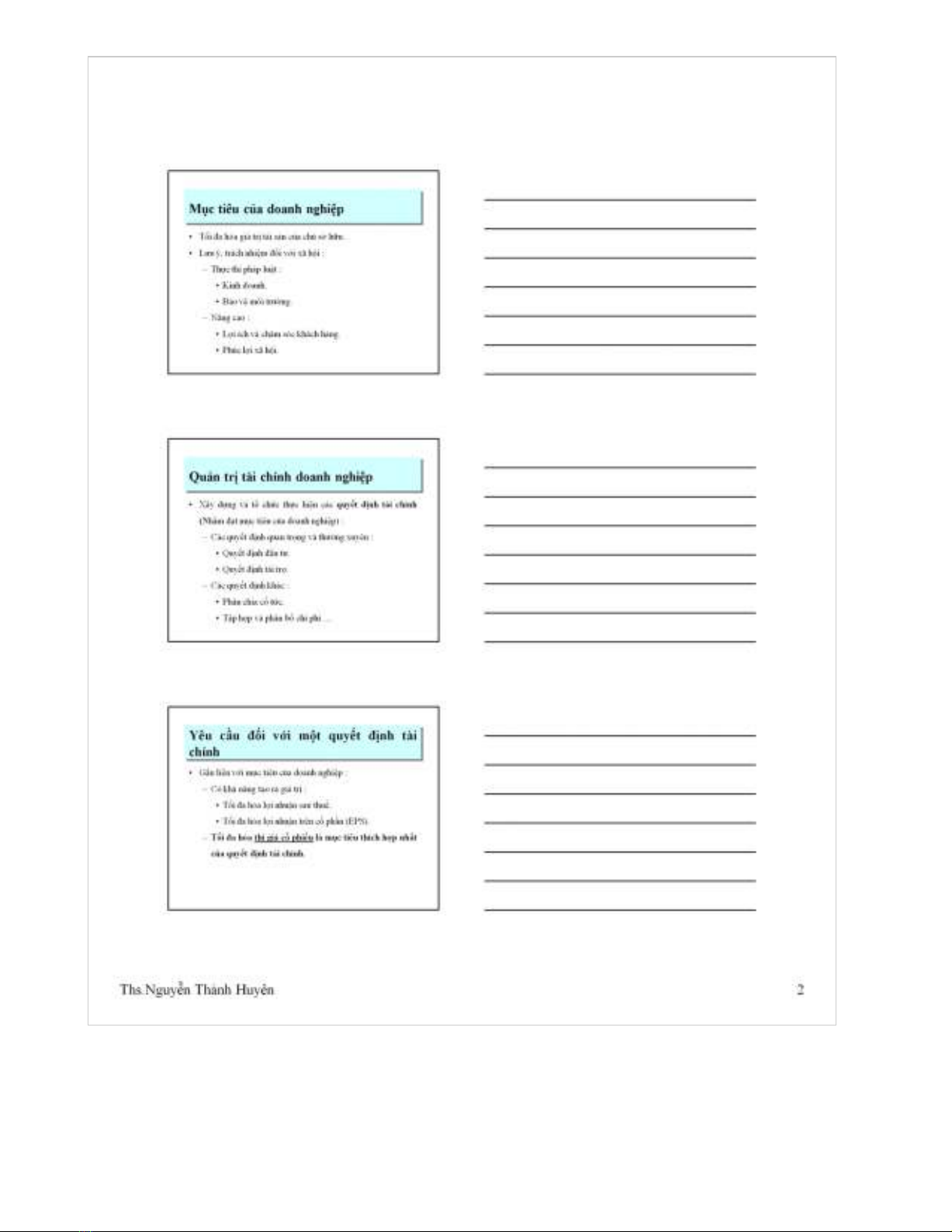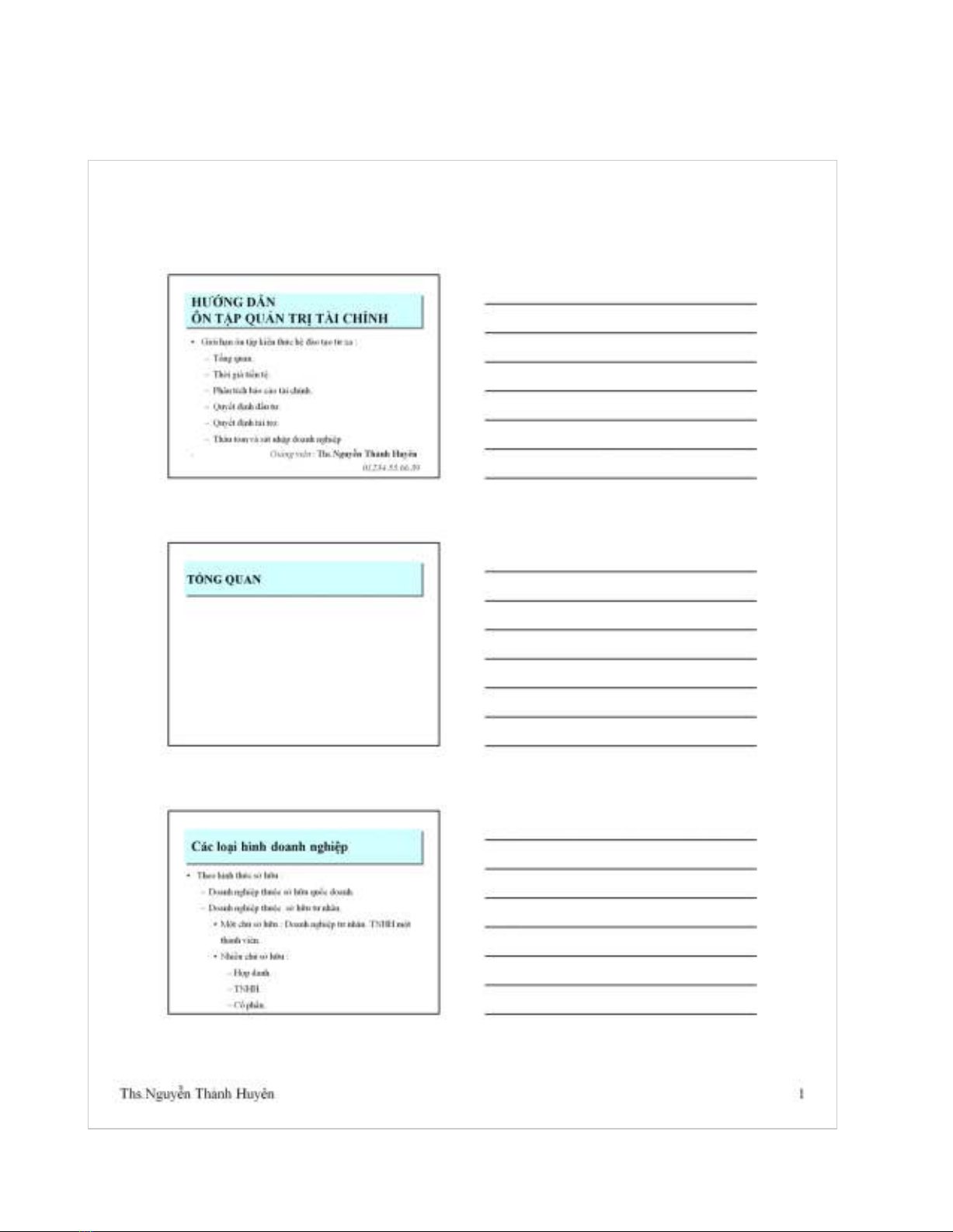 Hướng dẫn ôn tập quản trị tài chính với các nội dung chính: tổng quan tiền tệ, thời giá tiền tệ, phân tích báo cáo tài chính, quyết định đầu tư, quyết định tài trợ.