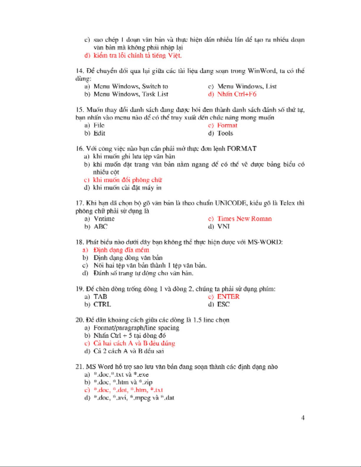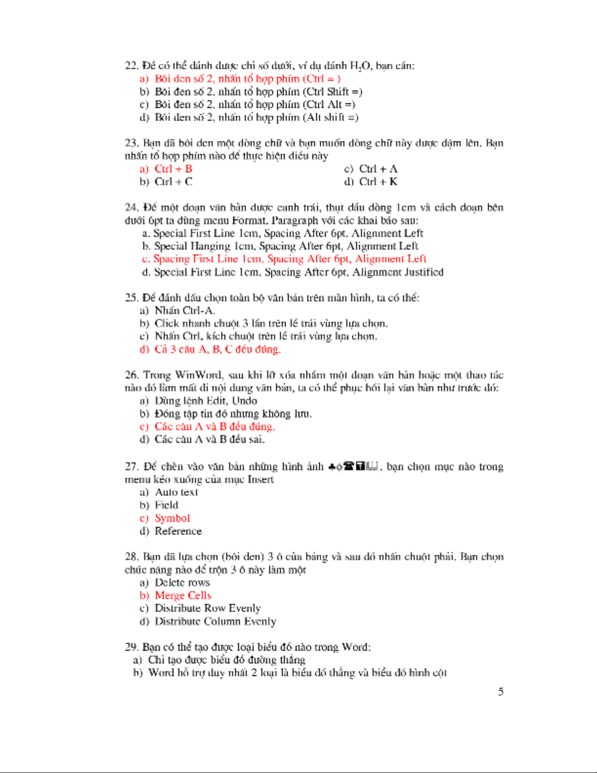 Đề thi Tin học trình độ A môn Word