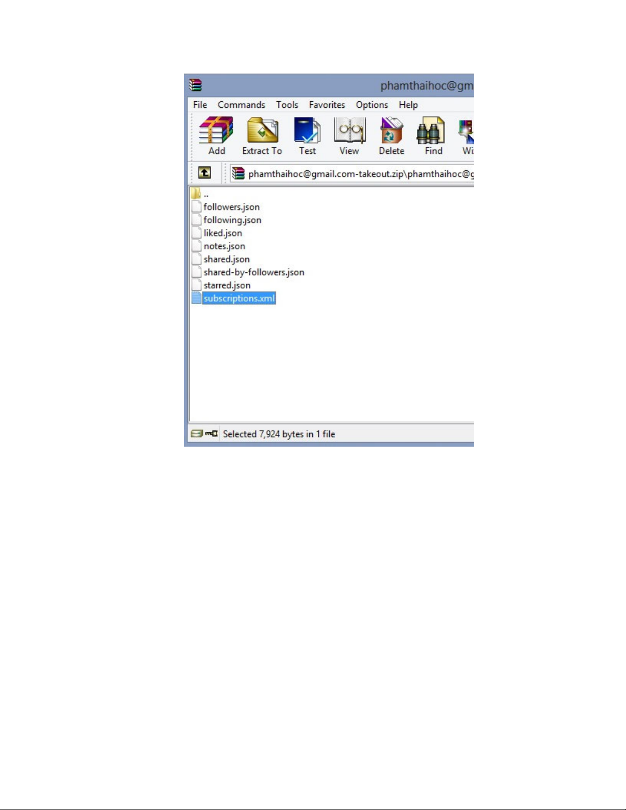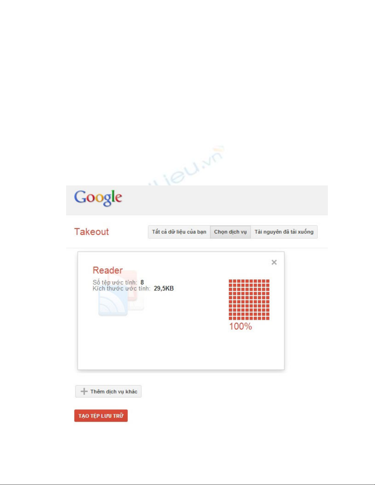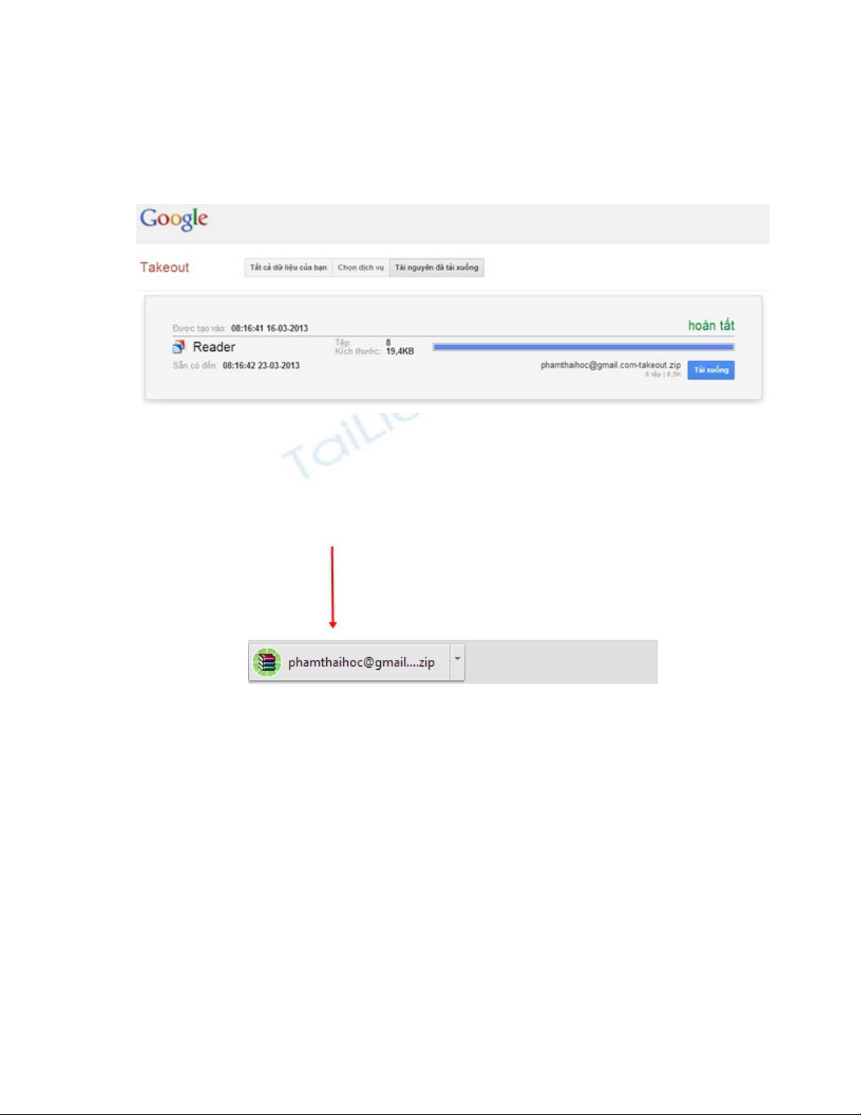 hành tải tập tin sao lưu của dịch vụ Google Reader Feeds về máy tính. Tập tin sẽ có dạng nén l