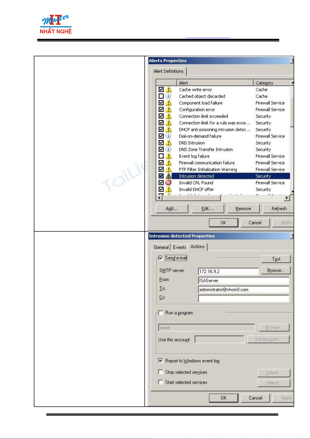 đ t t n công ợ ấ ISA s báo đ ng b ng cách g i mail cho Administrator ho c ch y 1 ng d ngẽ ộ ằ ử ặ ạ ứ ụ