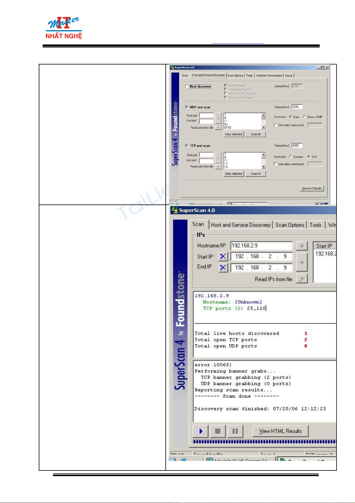 Bài Lab s d ng công c Supper Scan, đ ti n hành scan port, gi l p 1 trong nh ng b c c aử ụ ụ ể ế ả ậ ữ ướ ủ