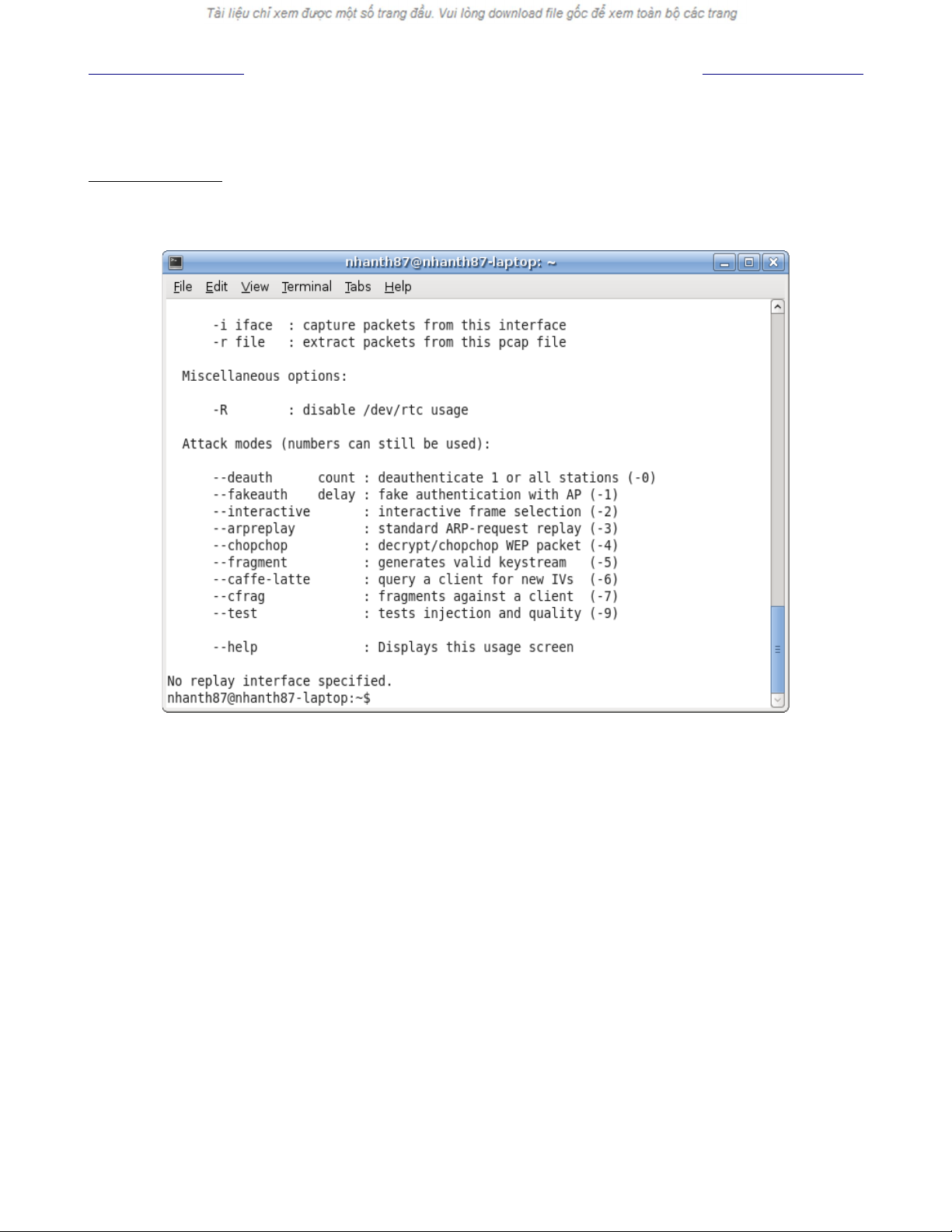 •Trước hết ta nói về các kỹ thuật crack WEP. Mở terminal lên và gõ aireplay-ng không có thông