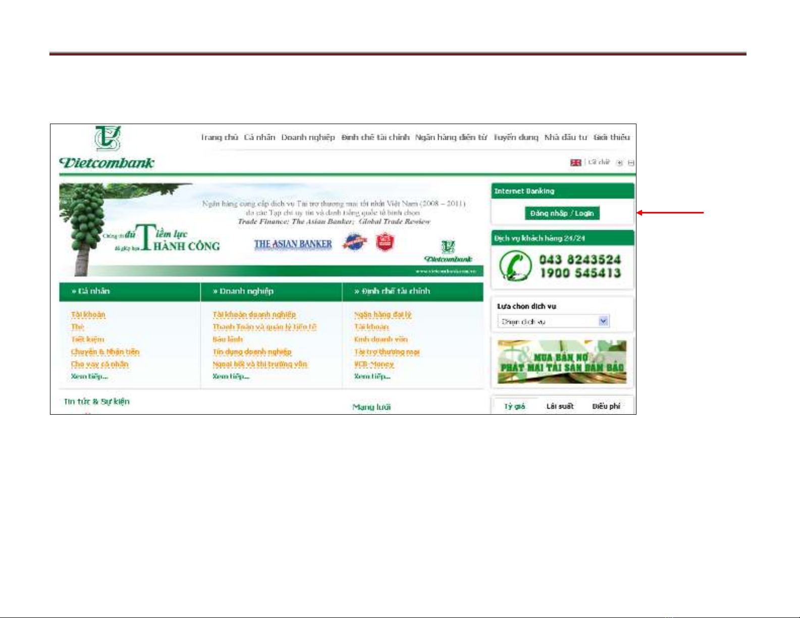 Truy cập chương trình VCB-iB@nking: tại địa chỉ www.vietcombank.com.vn