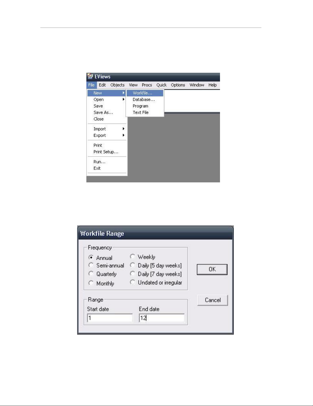 - Ta s nhn c hp thoi Workfile Range, mc nh chn Annual – báo cáo theo nm
