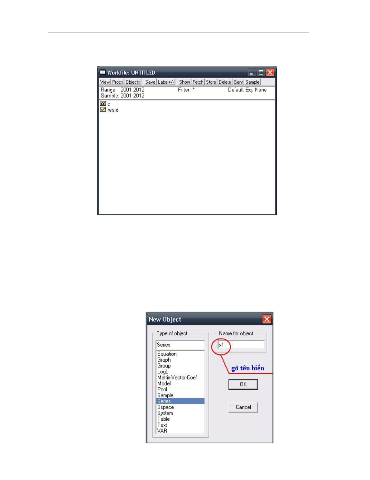 Xut hin hp thoi Series: tên bin (vd: x1), kích vào tab Edit, ri ln lt nhp d liu