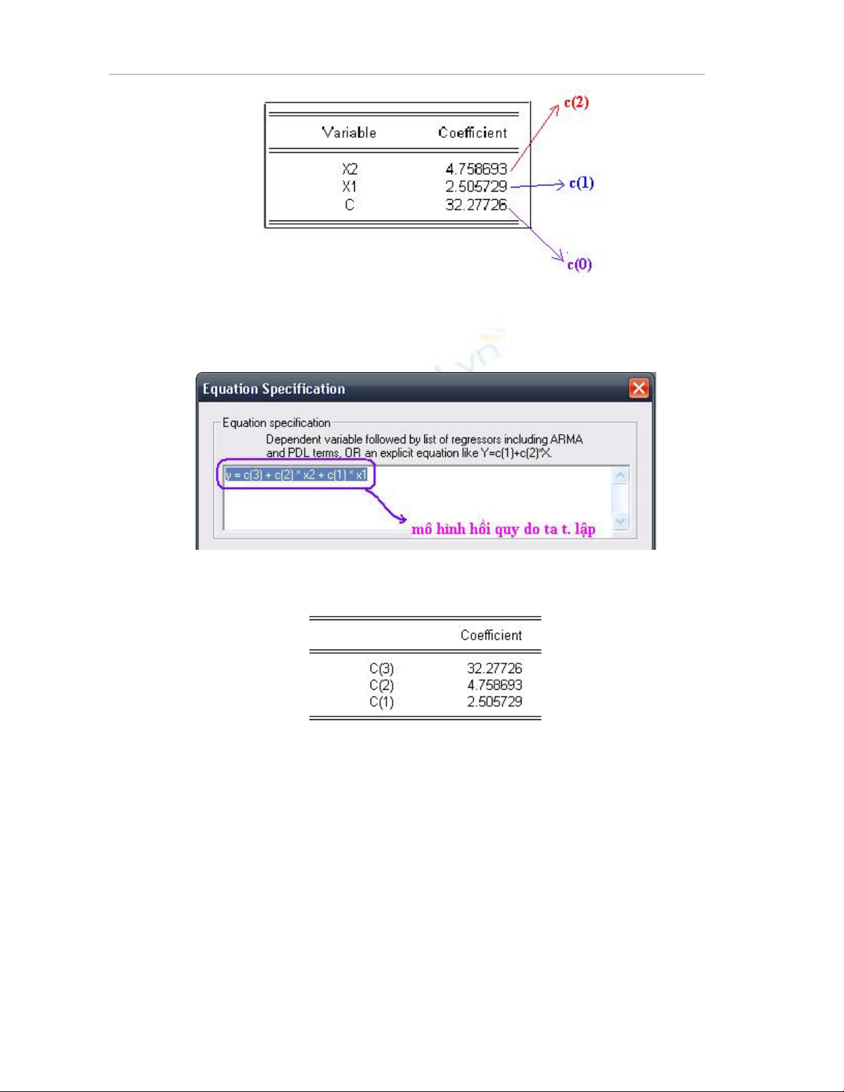 trình hi quy (Vd: y = c(3) + c(2)*x2 + c(1)*x1)
