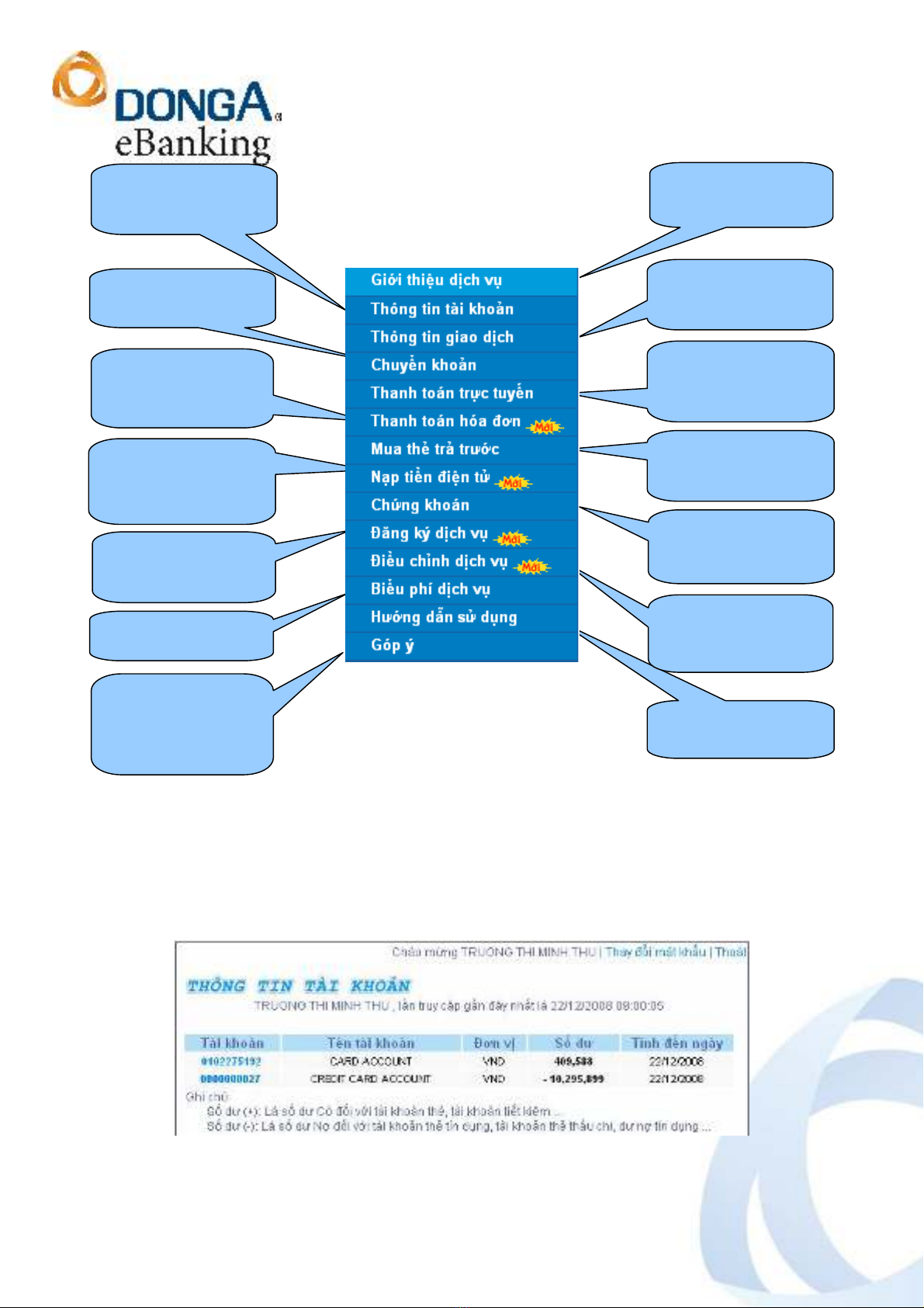 o Để xem toàn bộ thông tin tài khoản mà KH có, chọn Menu dịch vụ Thông tin tài