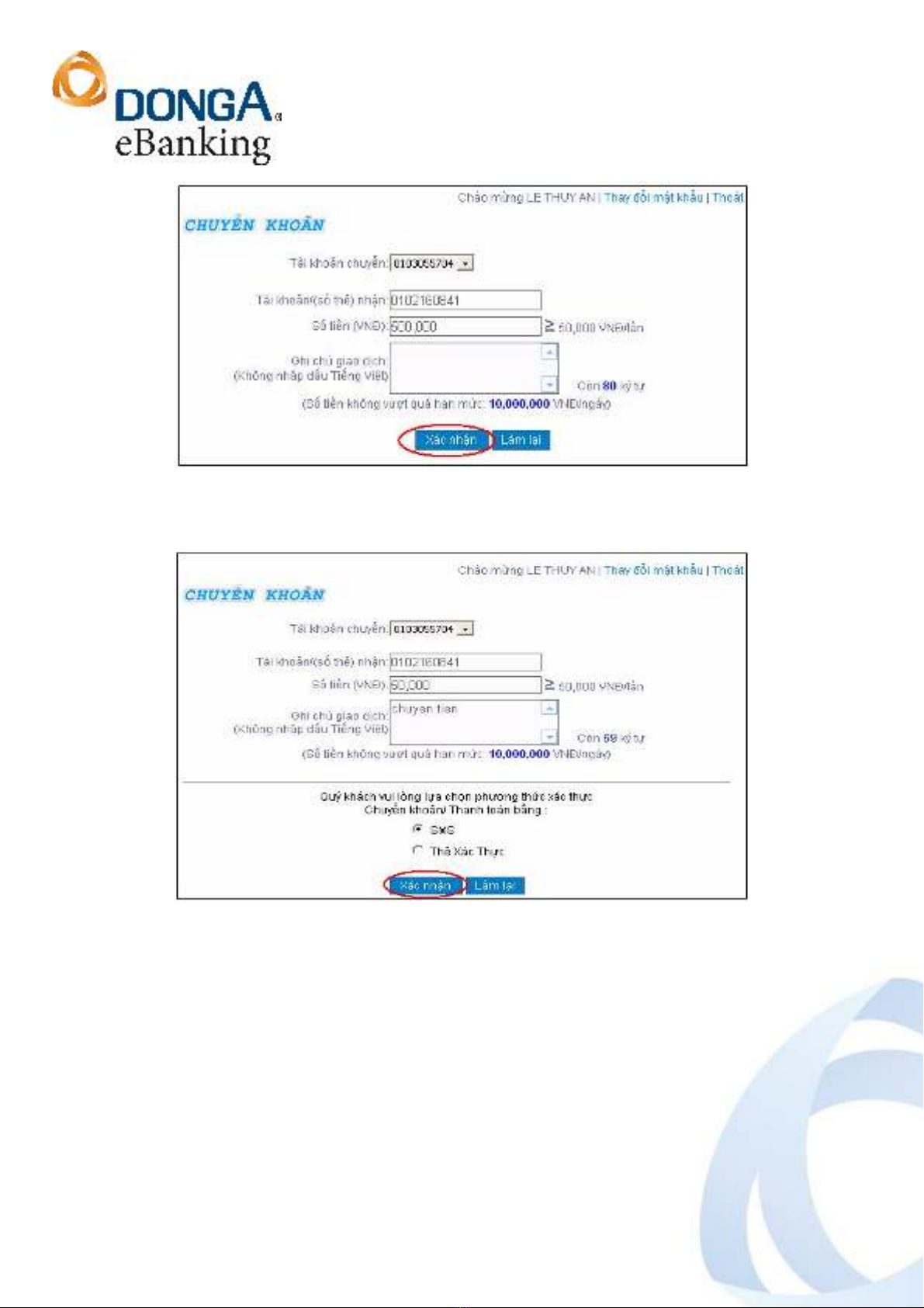 xác thực thanh toán/chuyển khoản và chọn Xác nhận